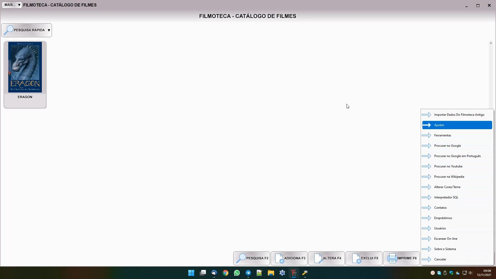 Quando você adiciona um filme, ao digitar o nome e sair do campo o sistema faz a captura automática dos dados da obra, caso a encontre na base de pesquisa interna. Se você deseja desativar esta captura automática, a partir da tela inicial do Filmoteca, clique em AÇÃO, e em AJUSTES.