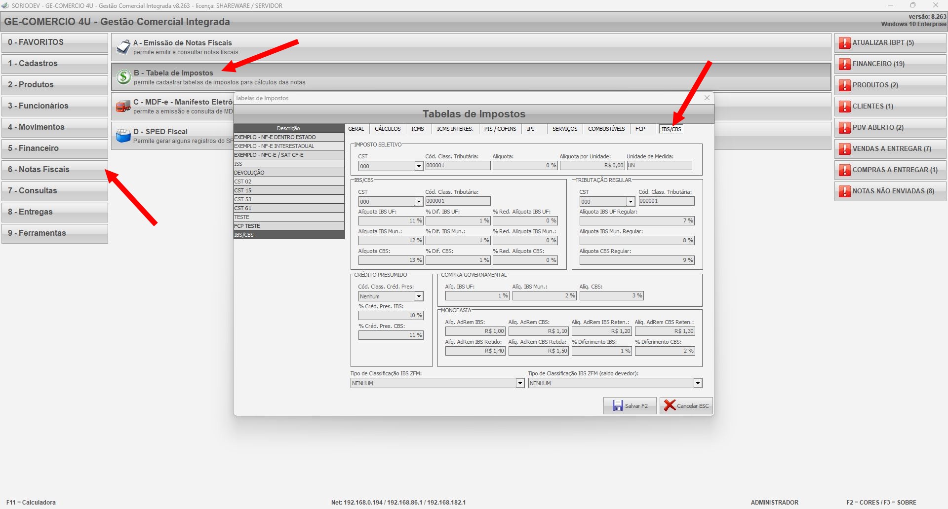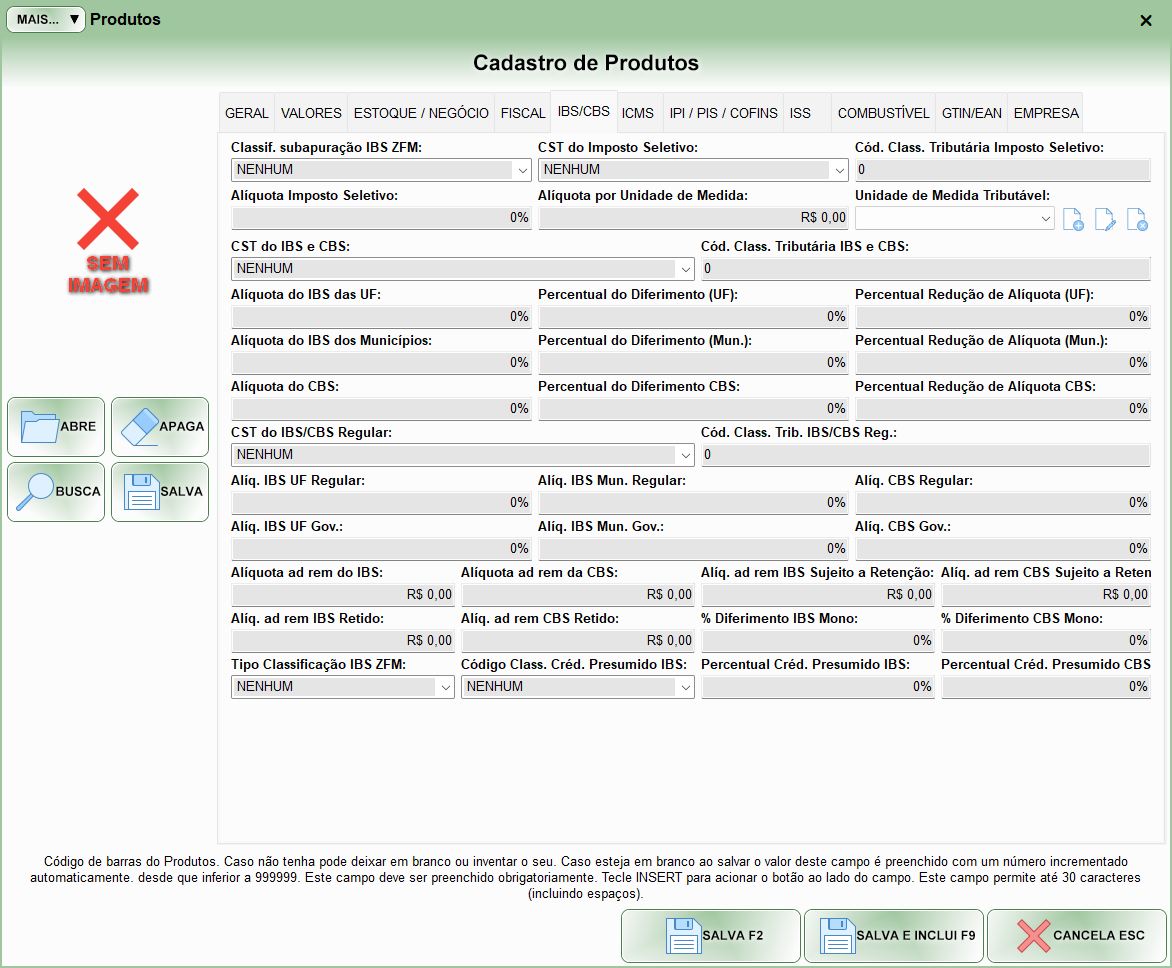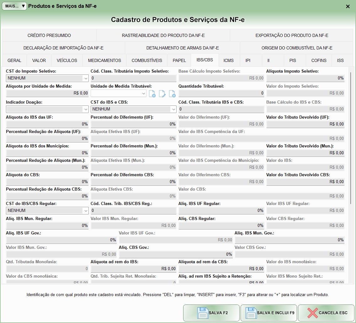 E finalmente temos a aba IBS/CBS, que concentra os novos impostos, assim como lá no produto.
