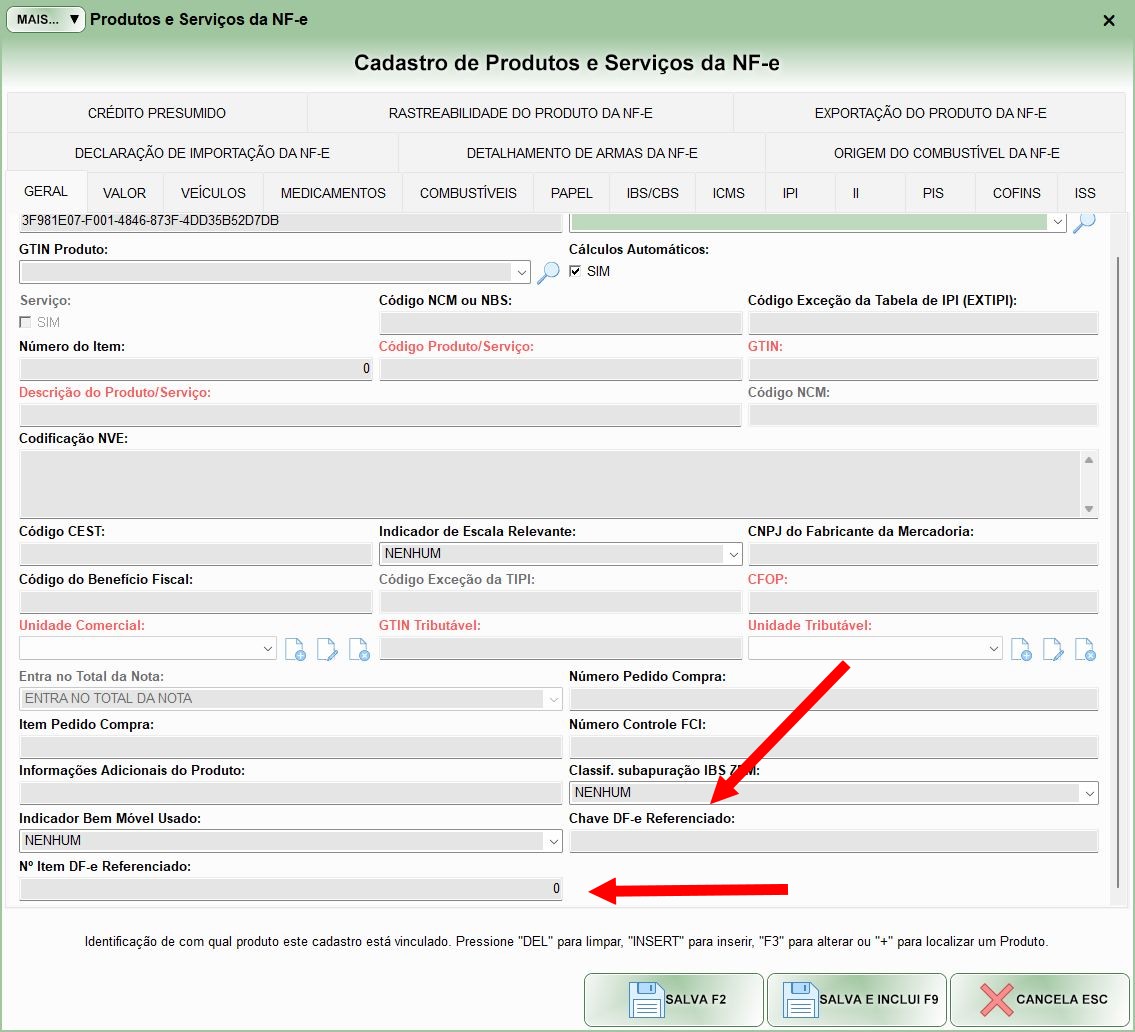 Ao inserir produtos na nota, também temos alguns campos novos para referenciar documentos: