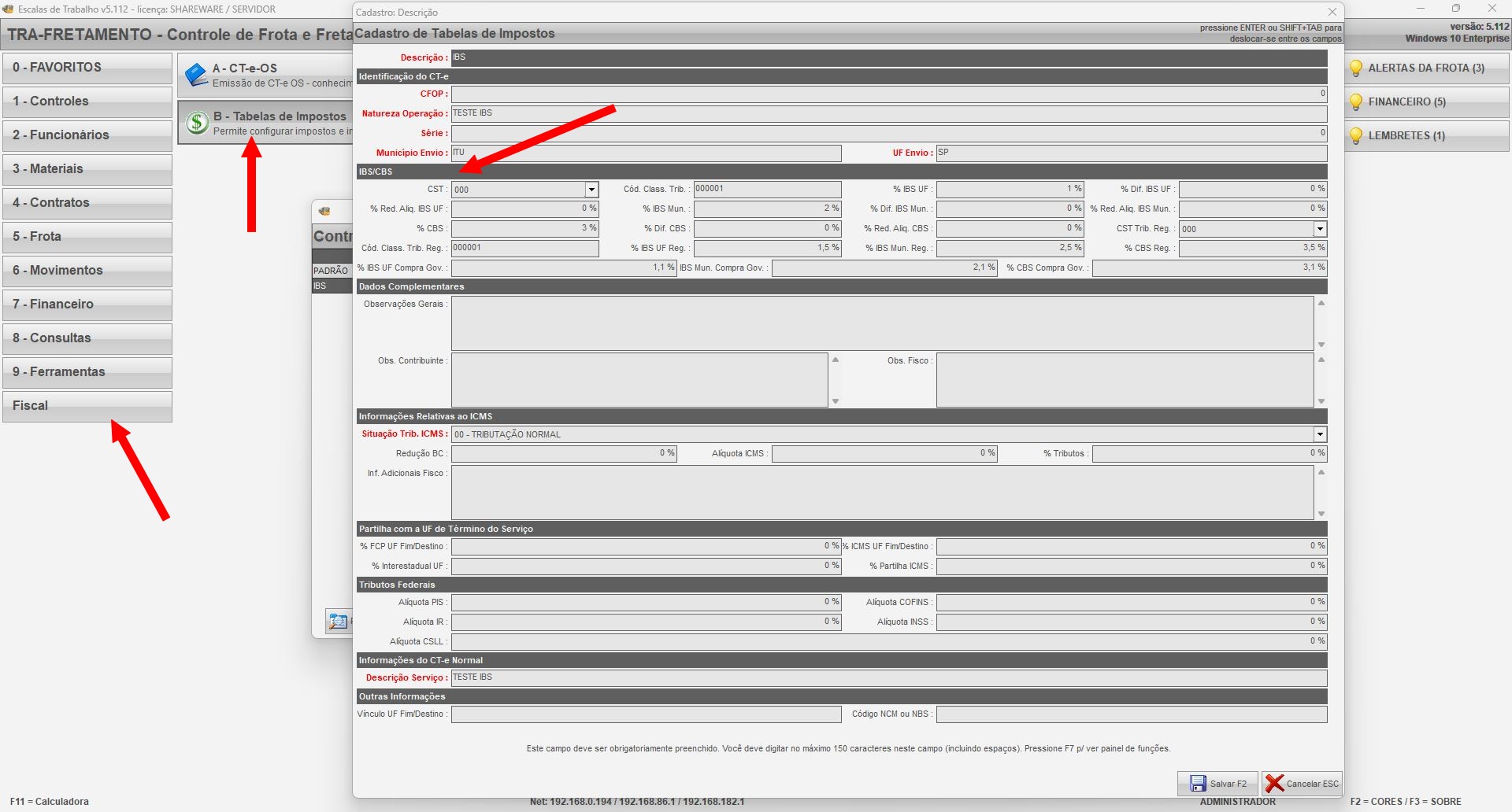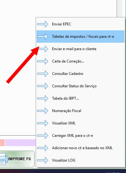 No antigo TRA-FRETAMENTO você deve começar preenchendo os novos impostos no módulo TABELA DE IMPOSTOS, conforme mostra a imagem: