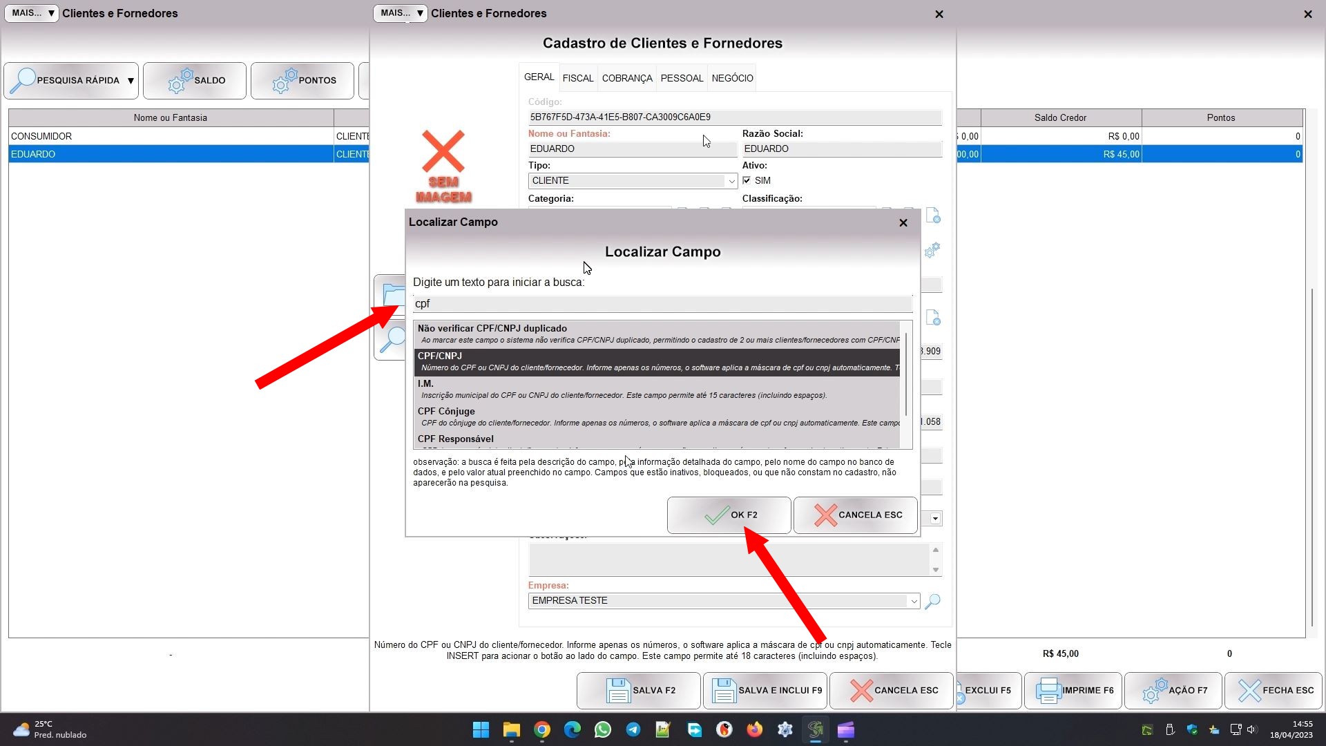 O sistema faz a busca considerando só os campos desbloqueados, ou seja, que você pode digitar. E ele considera o nome do campo no banco de dados, a descrição, e os detalhes do campo para a busca. Este procedimento funciona em todos os cadastros do sistema, mas é especialmente útil naqueles que tem muitos campos, como clientes, produtos e nos módulos fiscais.