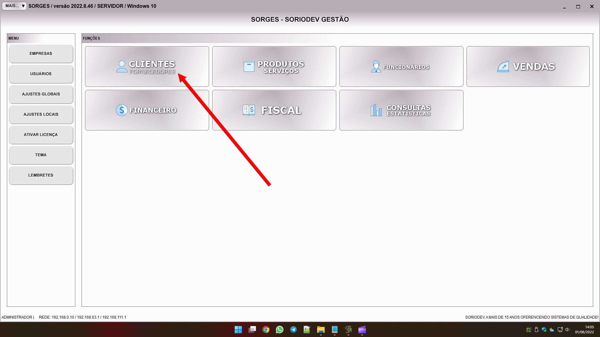 Com exceção do controle de ponto, todos os segmentos tem o módulo de clientes e fornecedores: