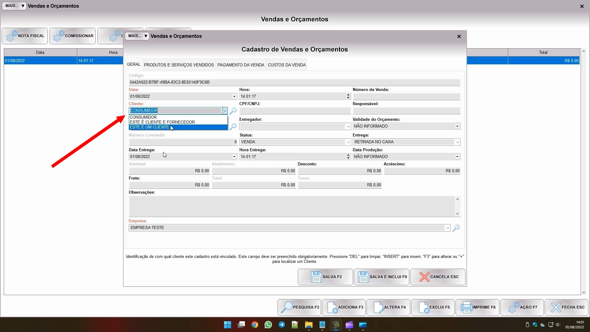 O mesmo ocorre numa venda, mas nela temos o campo CLIENTE, então só posso selecionar clientes nele.