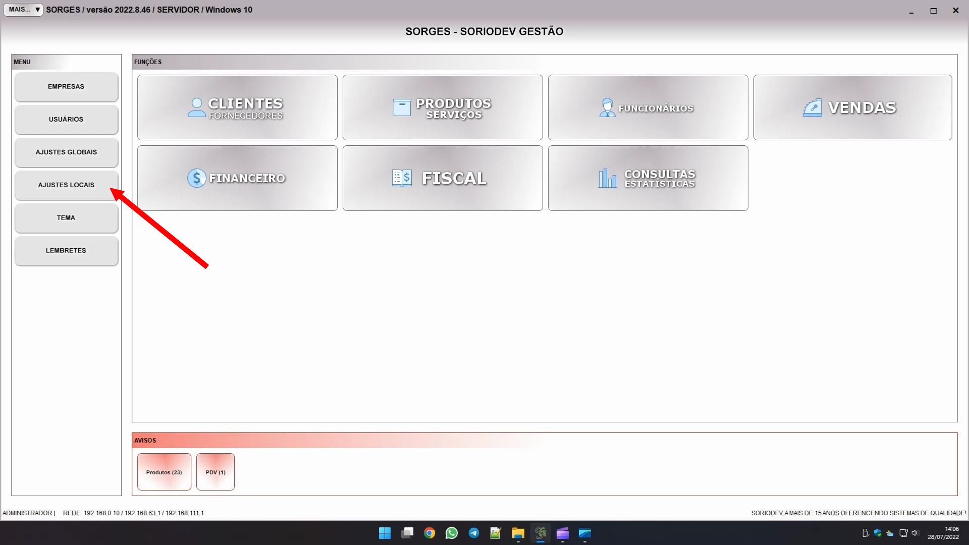 Para configurar, vá em AJUSTES LOCAIS, na tela inicial: