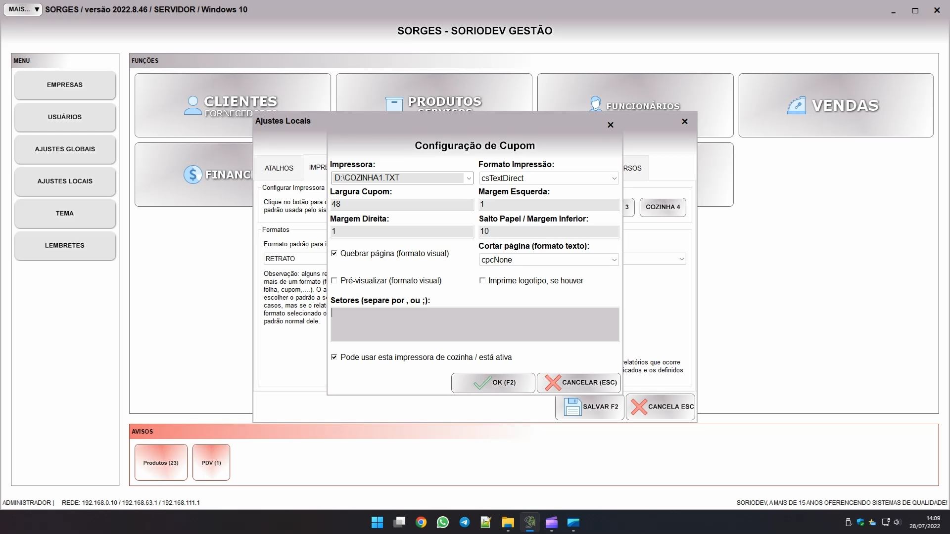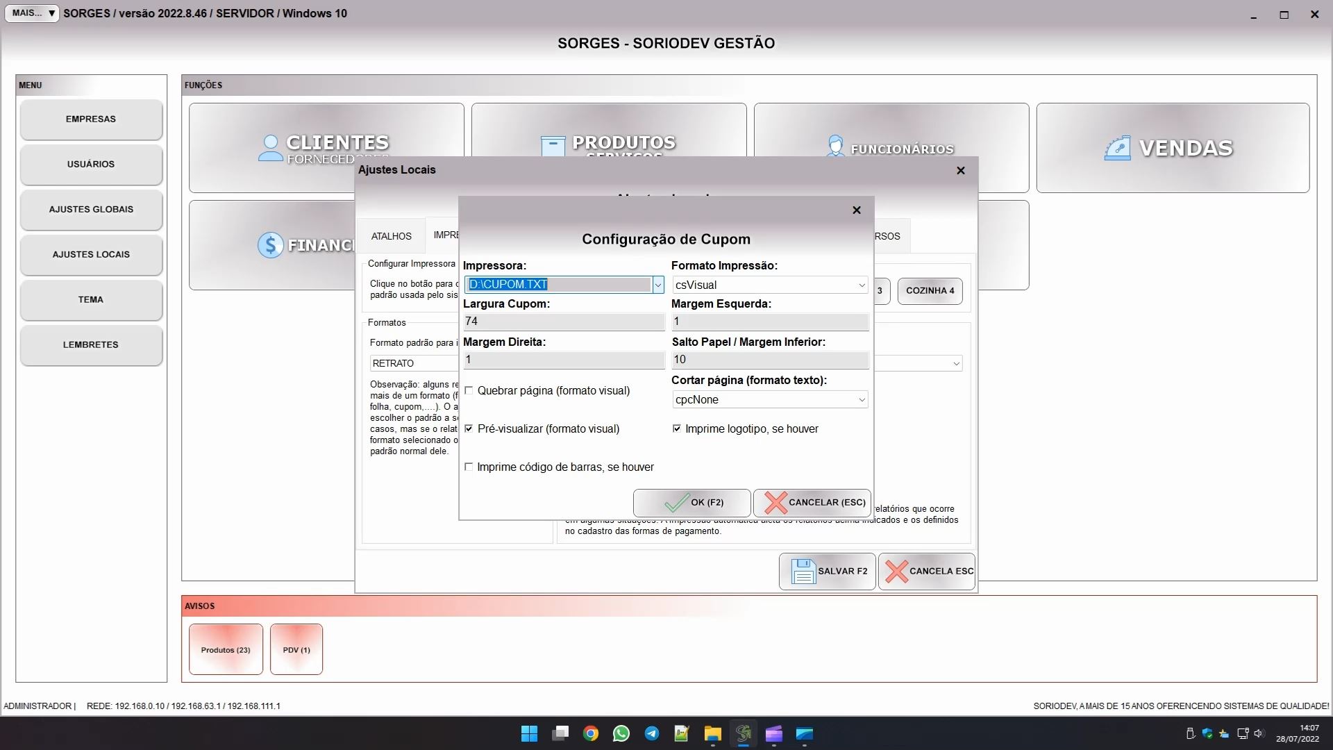 SORGES / SORGES LIGHT – Configurando a impressão de cupons