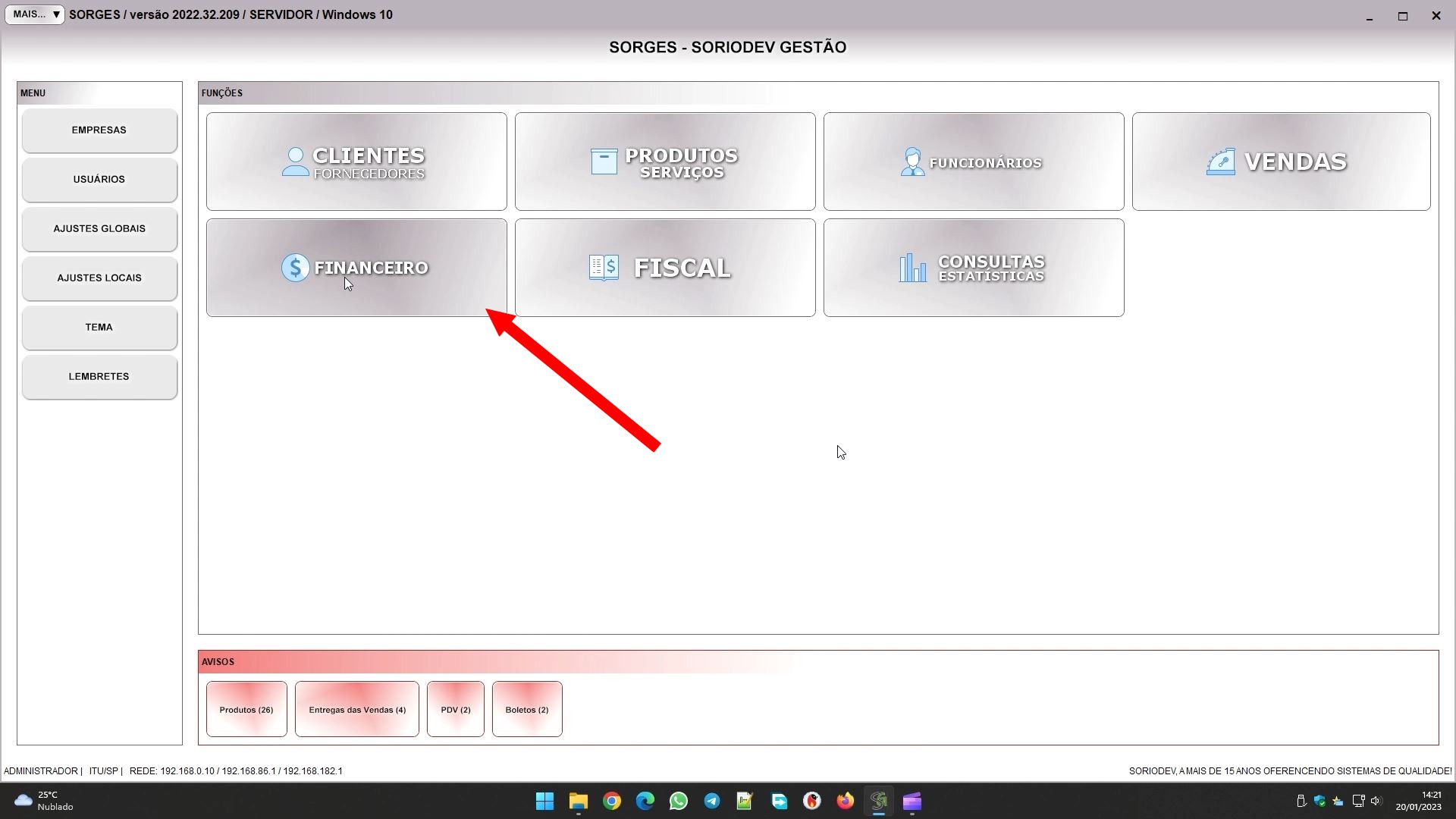 Sem mais delongas, para começar a configurar o boleto vamos em FINANCEIRO: