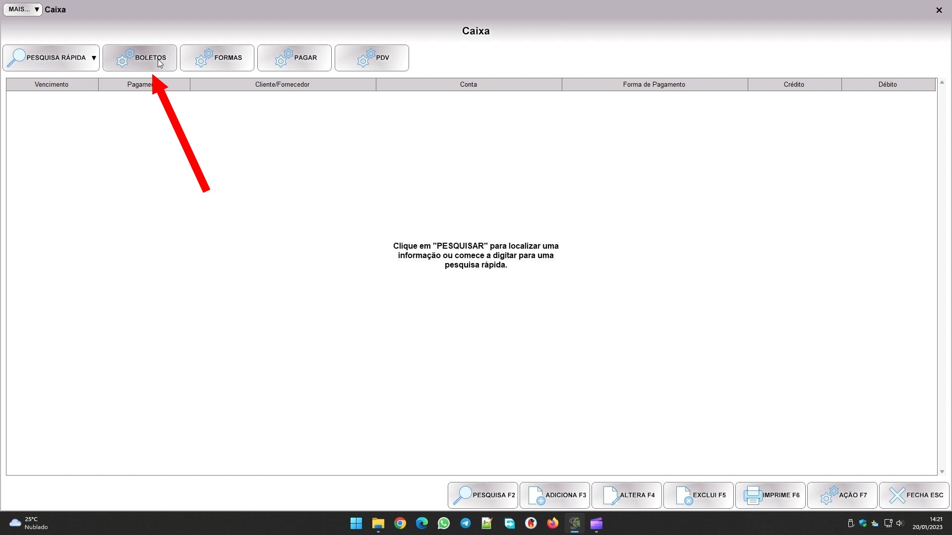 Uma vez que você criou a conta, pode sair do controle de contas, e assim voltará ao módulo de boletos. Lembrando que chegamos nele vindo em FINANCEIRO, depois no botão BOLETOS.