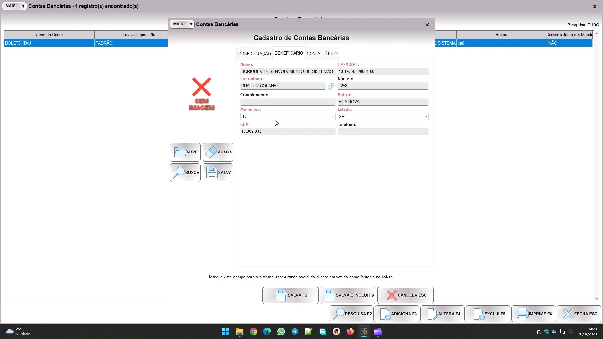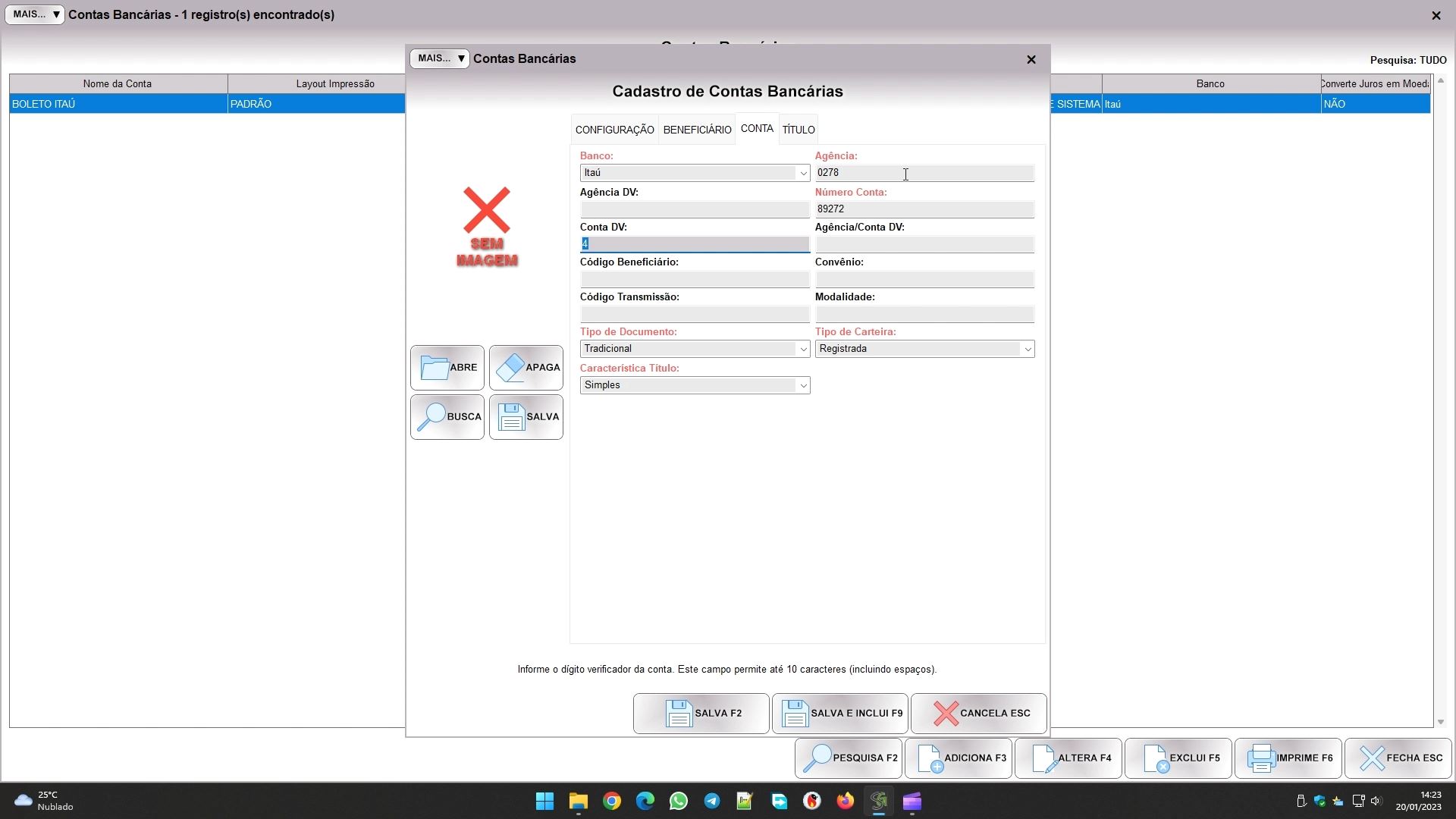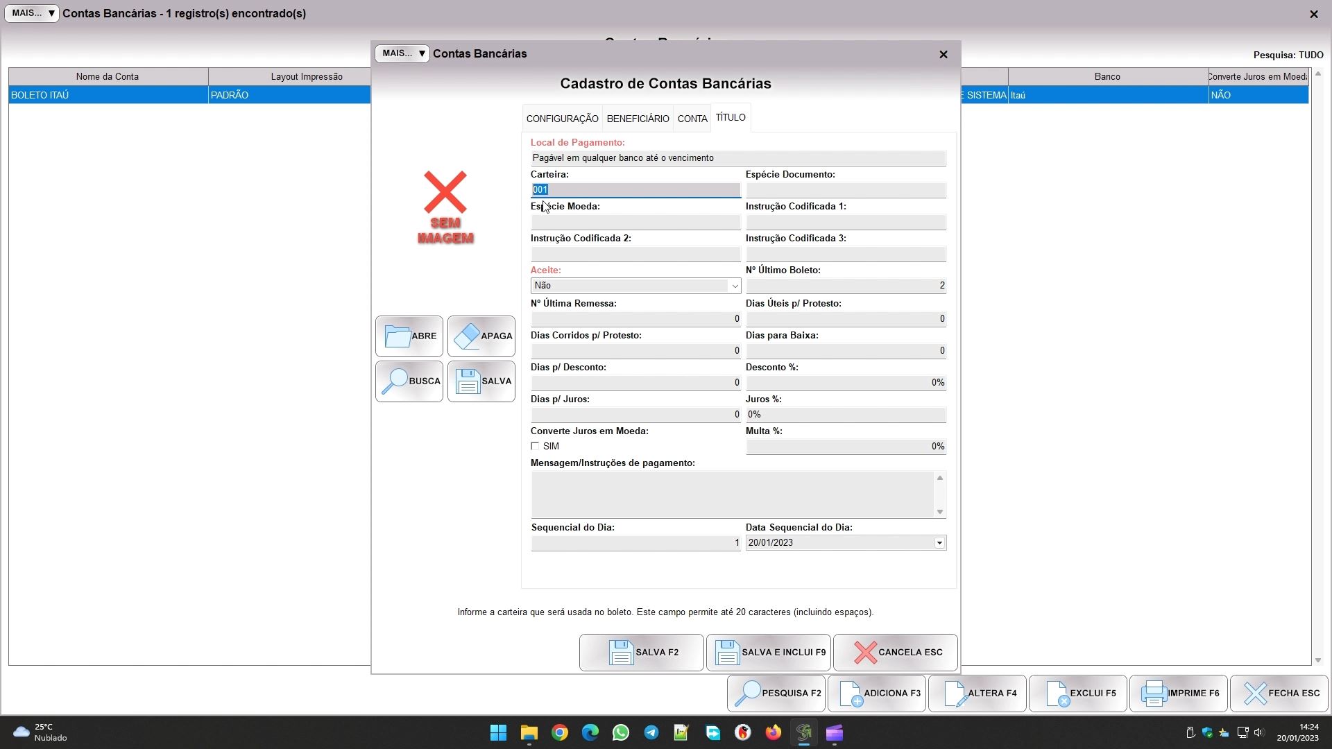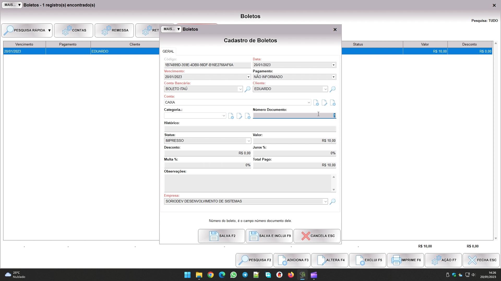 - CONTA: é a conta bancária relativa ao lançamento financeiro, quando o boleto for pago, é a mesma conta do controle de caixa;