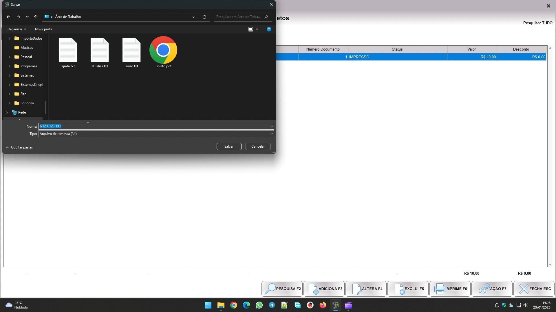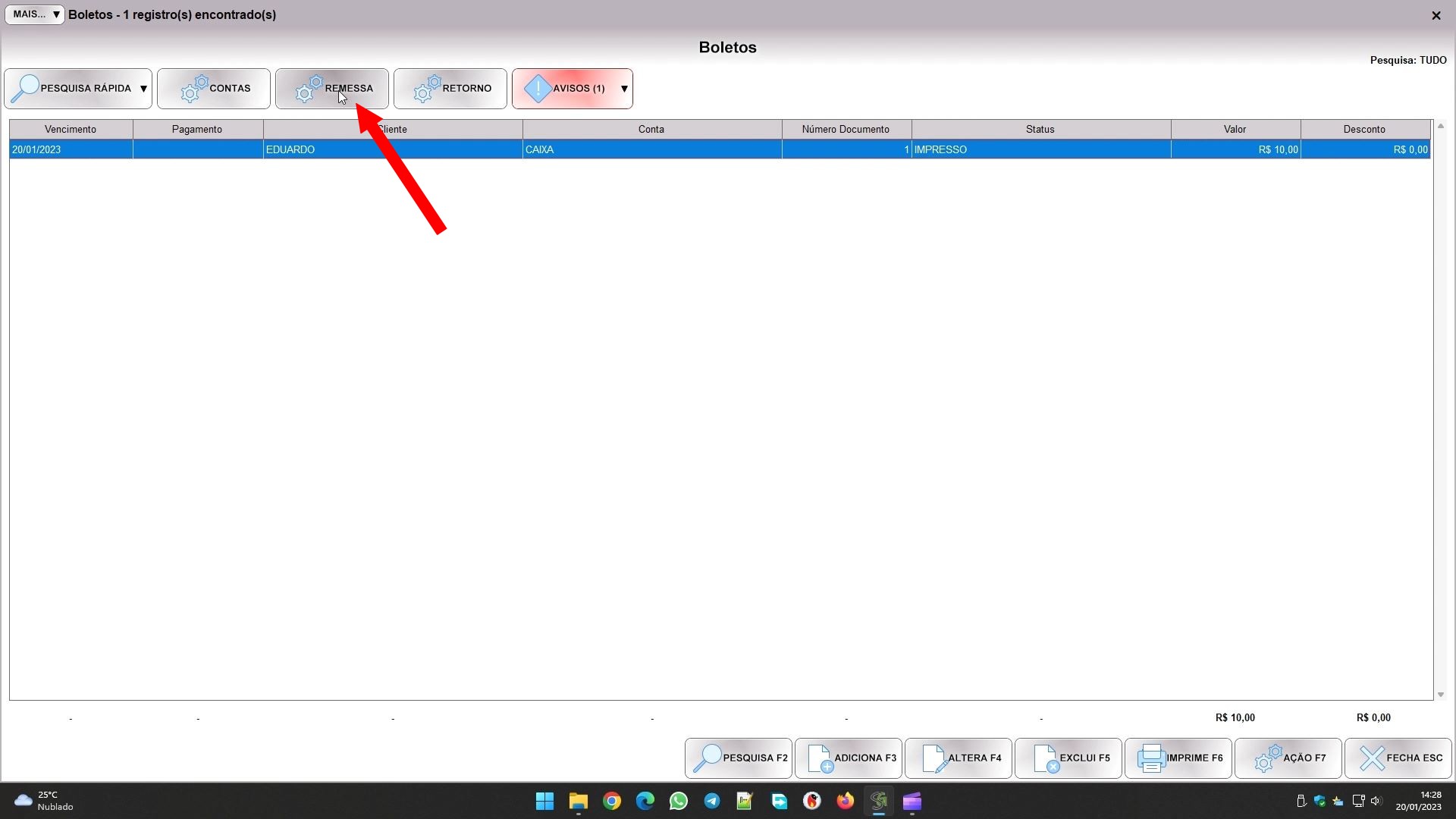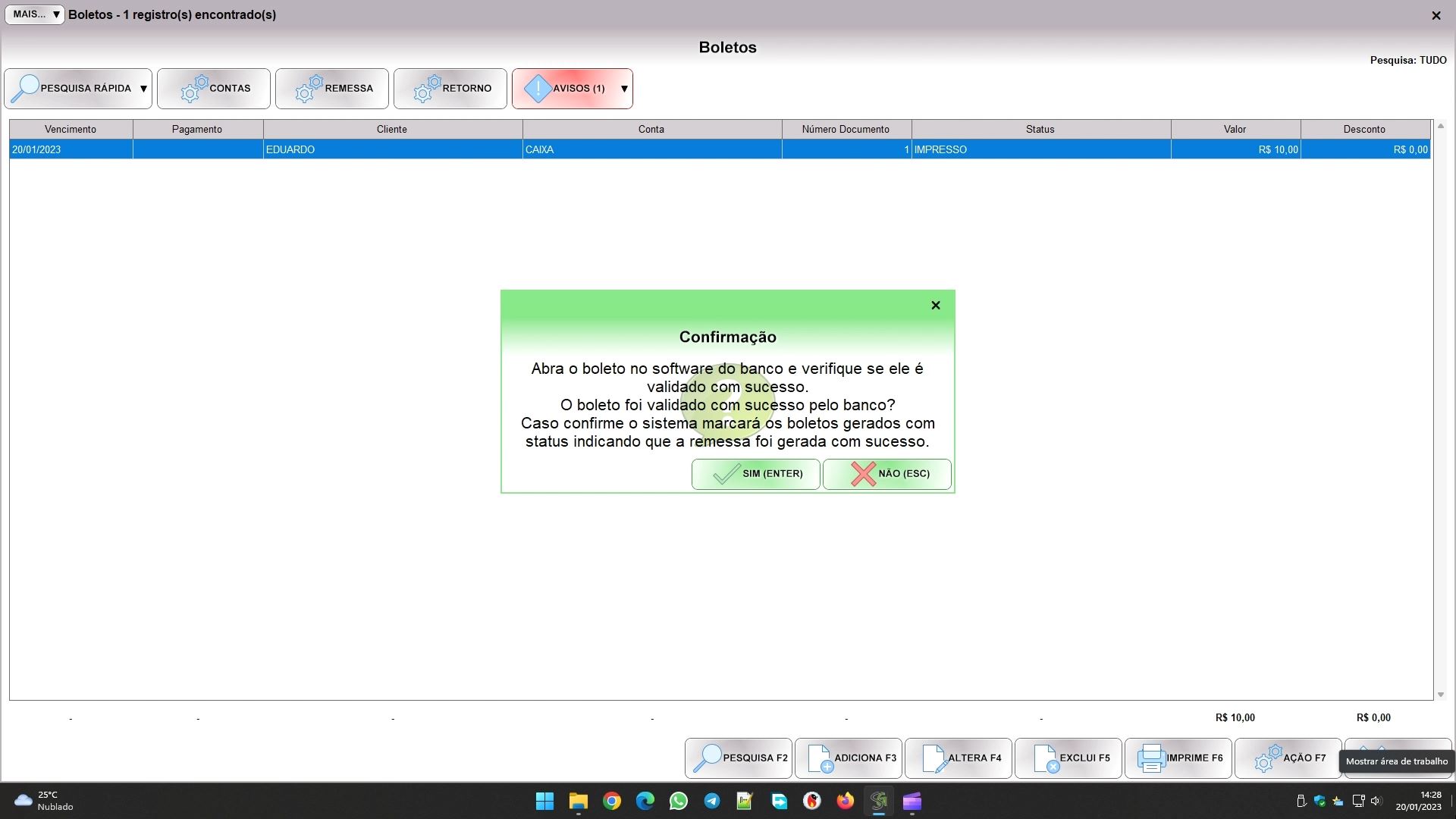 Se o banco aceitar o arquivo, clica em SIM na mensagem. Se ele rejeitar clica em NÃO. A diferença entre clicar em SIM ou NÃO é o programa atualizar o STATUS do boleto: