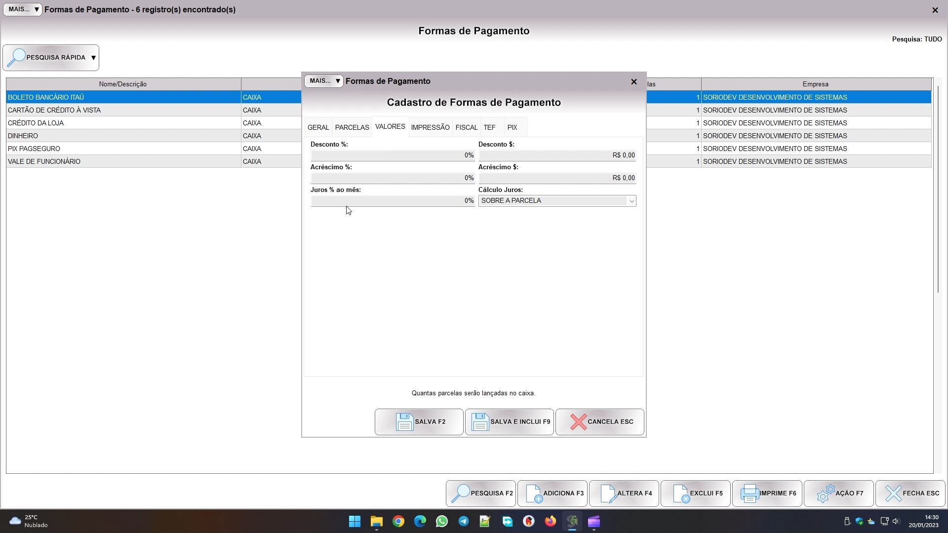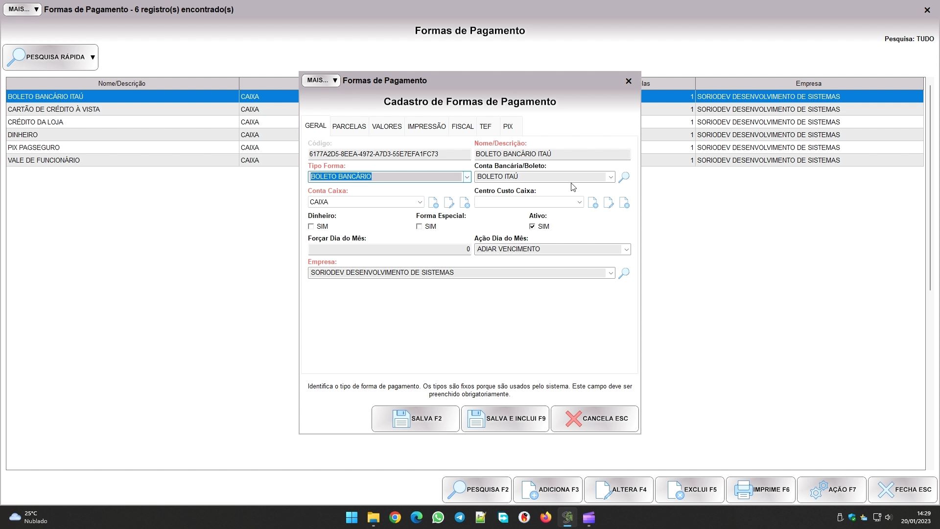 Aí vamos cadastrar ao menos uma forma. Começando pela aba GERAL: