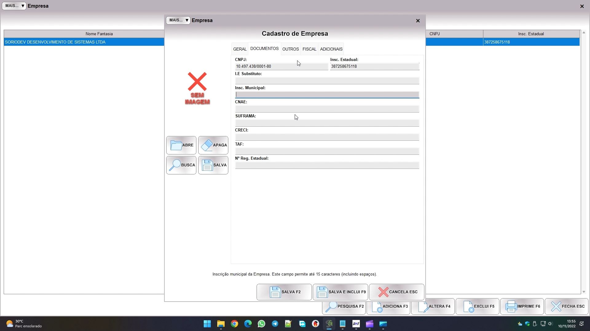 Na empresa você preenche seu CNPJ e sua inscrição estadual. Se a empresa vende serviços preencha a inscrição municipal também. É interessante indicar na aba FISCAL o regime tributário da empresa, mas isso não entra no sat, serve apenas para orientar o cadastro dos produtos.