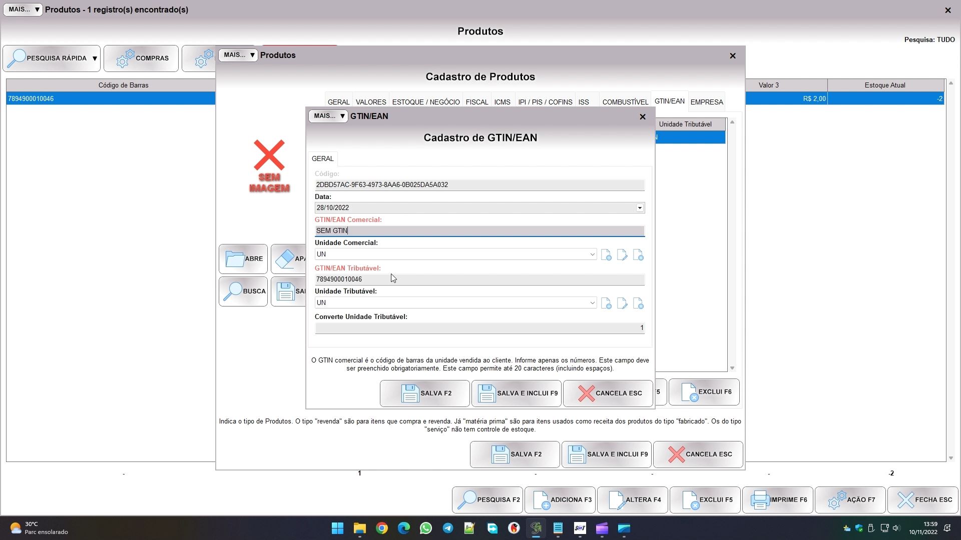 Se o produto possui código de barras, cadastre-o na aba GTIN/EAN. O sistema só usará o gtin comercial, então pode preencher o tributável com o mesmo código para conseguir salvar o cadastro.