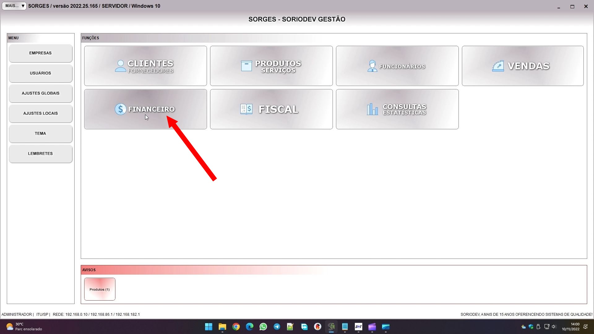 Para finalizarmos os cadastros, precisamos ver um detalhe na forma de pagamento. Entre em FINANCEIRO: