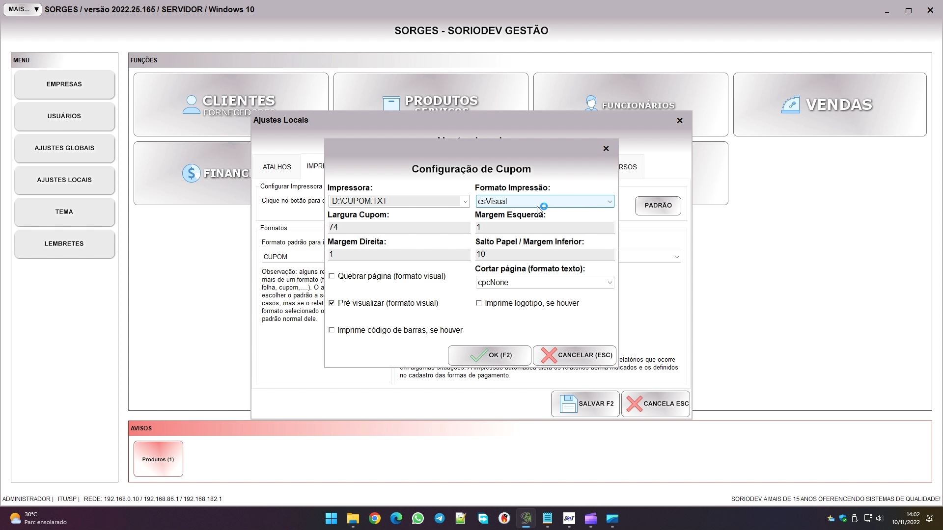 ajustes globais – impressora de cupom