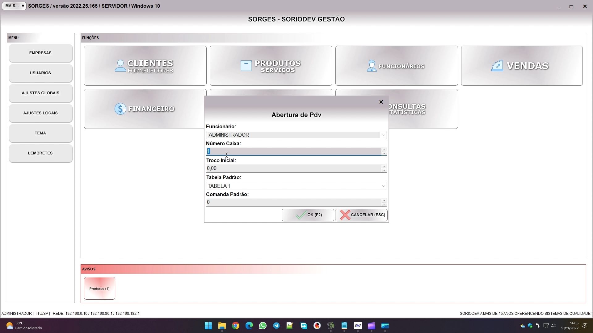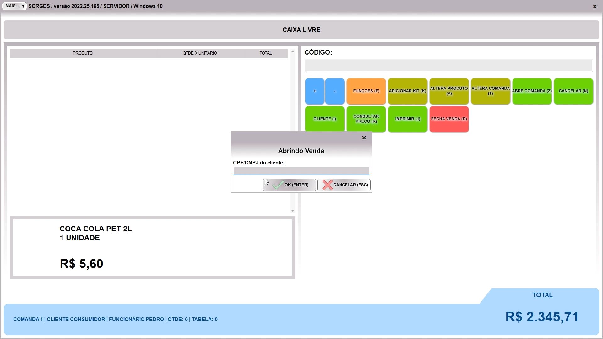 abrindo o pdv