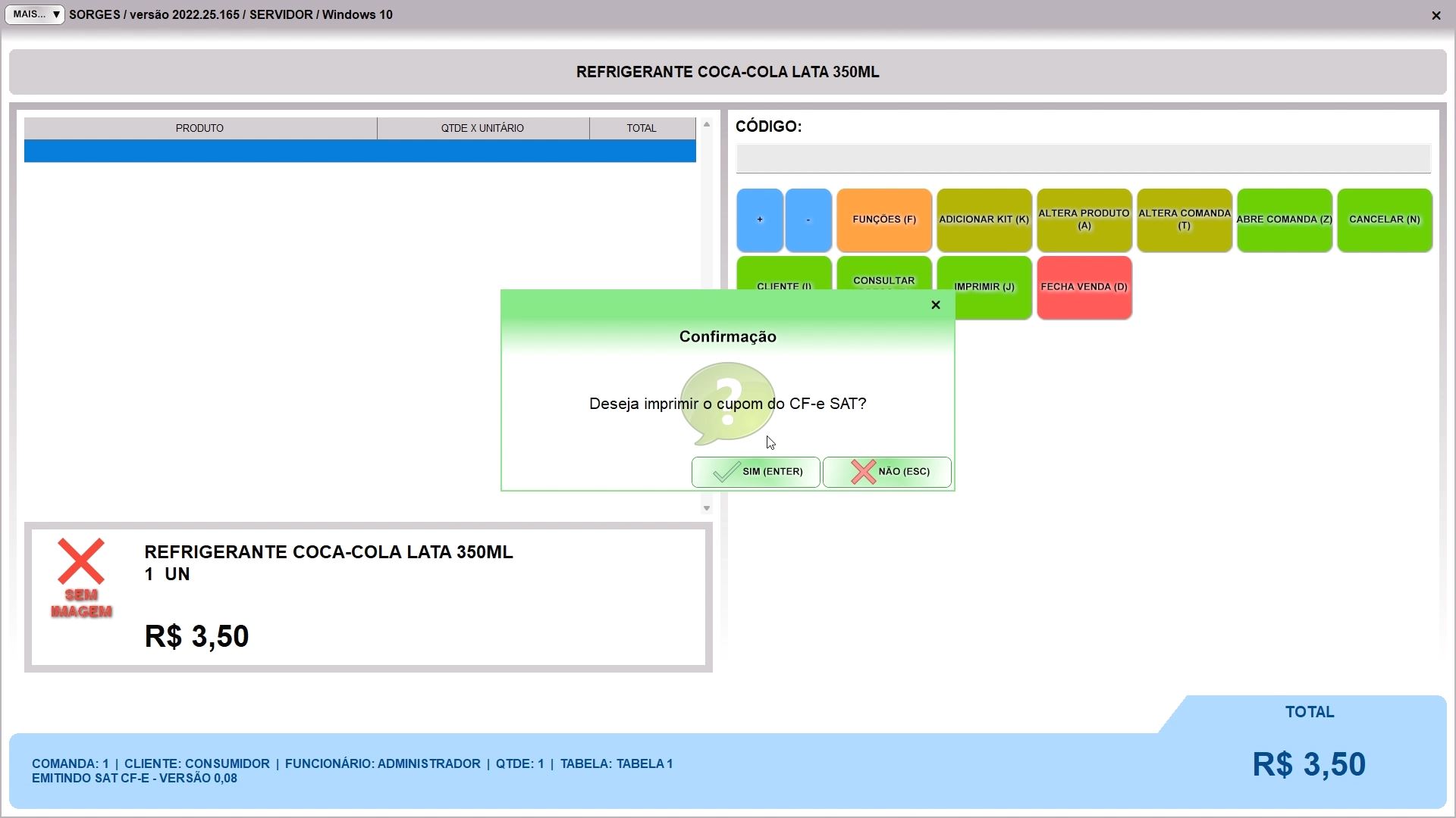 E também uma pergunta se quer imprimir o cupom: