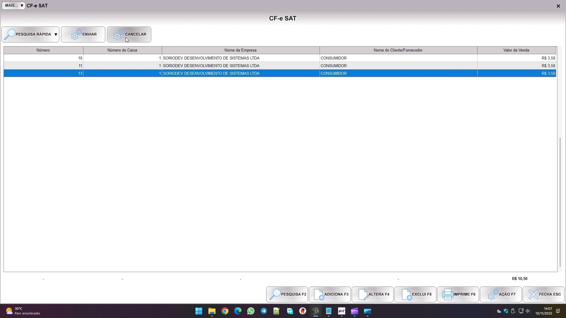 Depois em SAT CF-e: