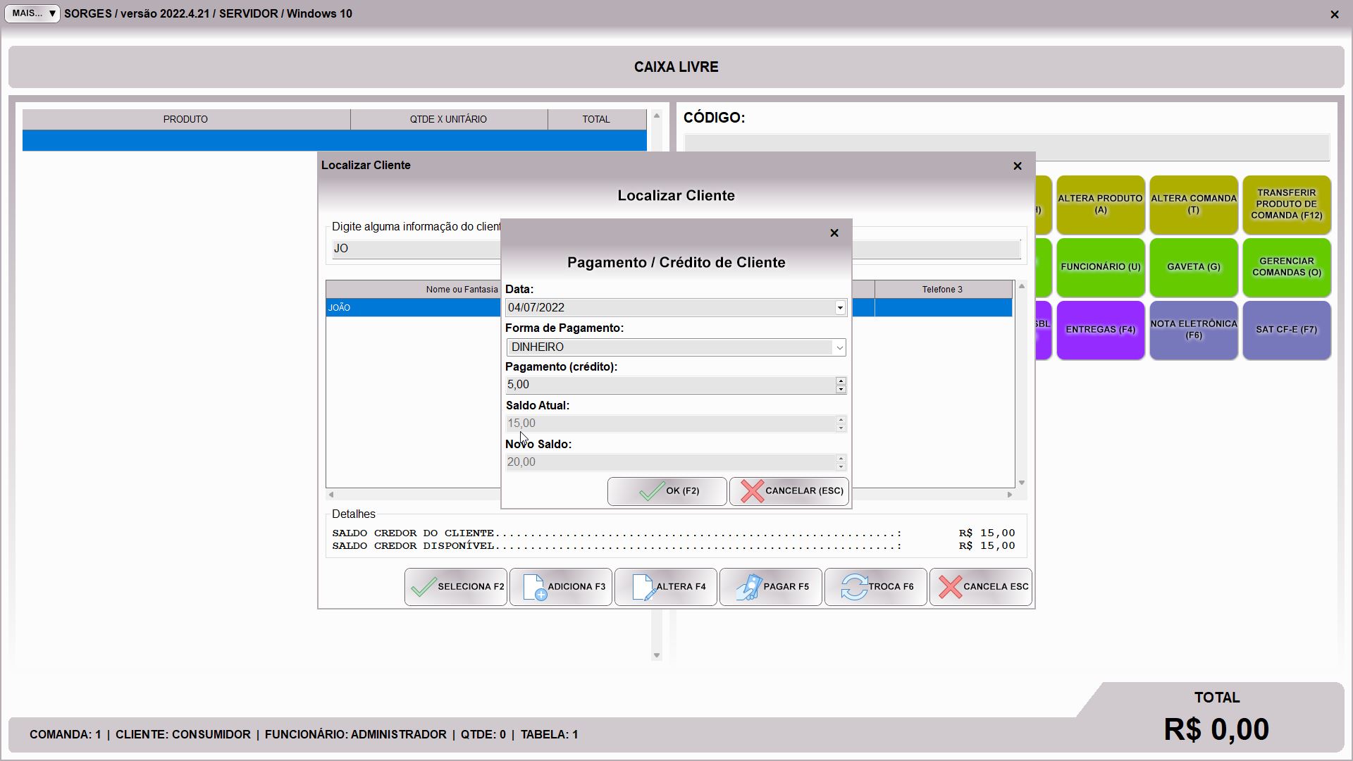 SORGES / SORGES LIGHT – Controlando o pagamento de cliente via crédito prévio