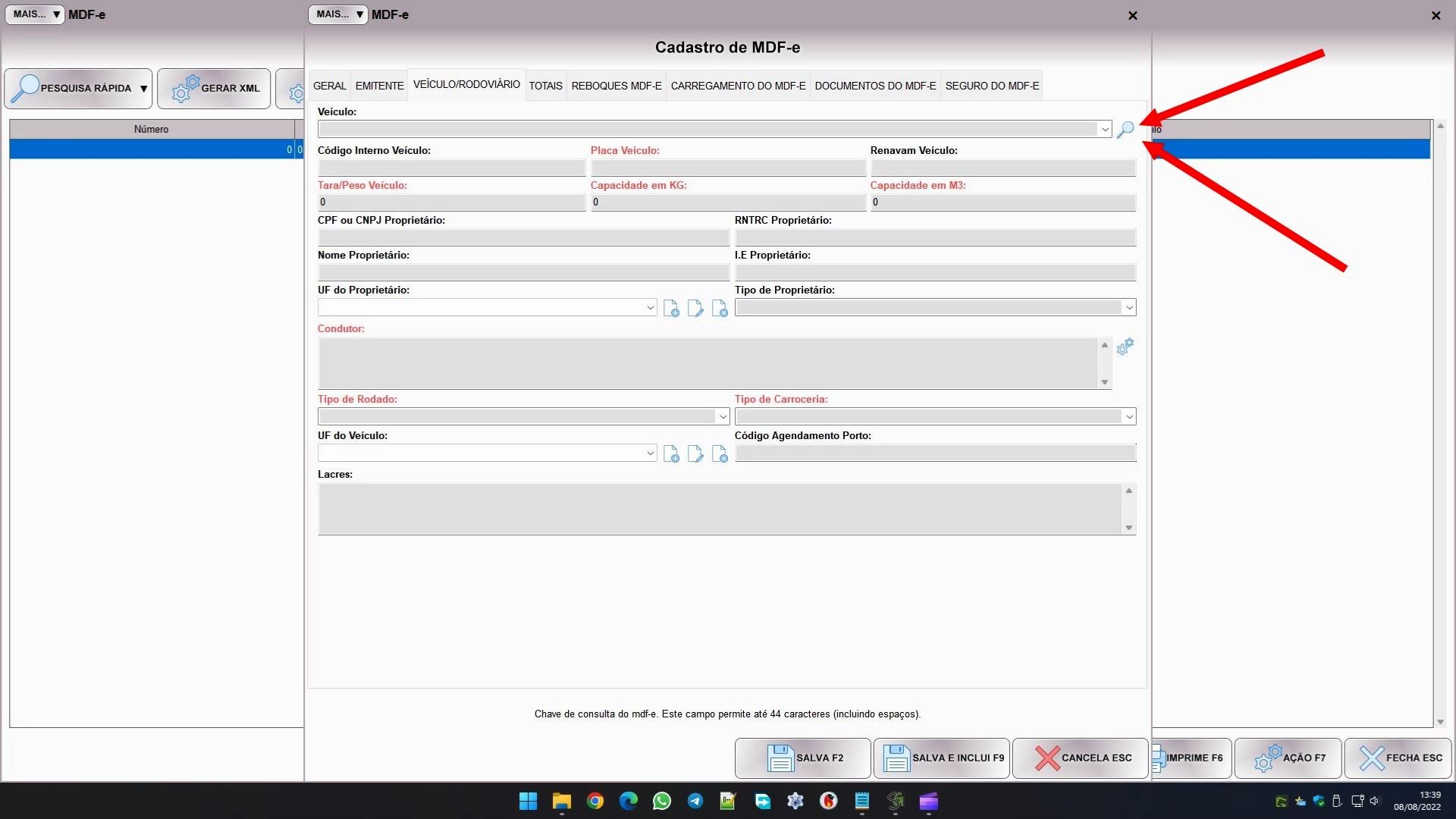 No caso dos sistemas do segmento de comércio, ao cadastrar um veículo para usar numa NF-e ou num MDF-e o cadastro será um pouco diferente, como o desta imagem: