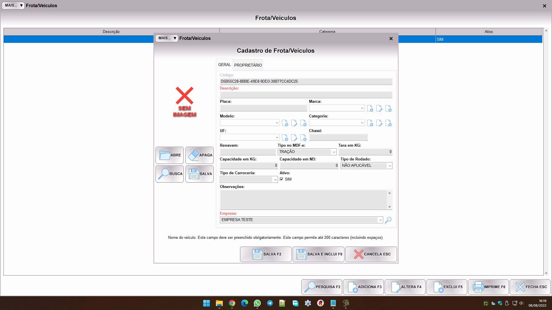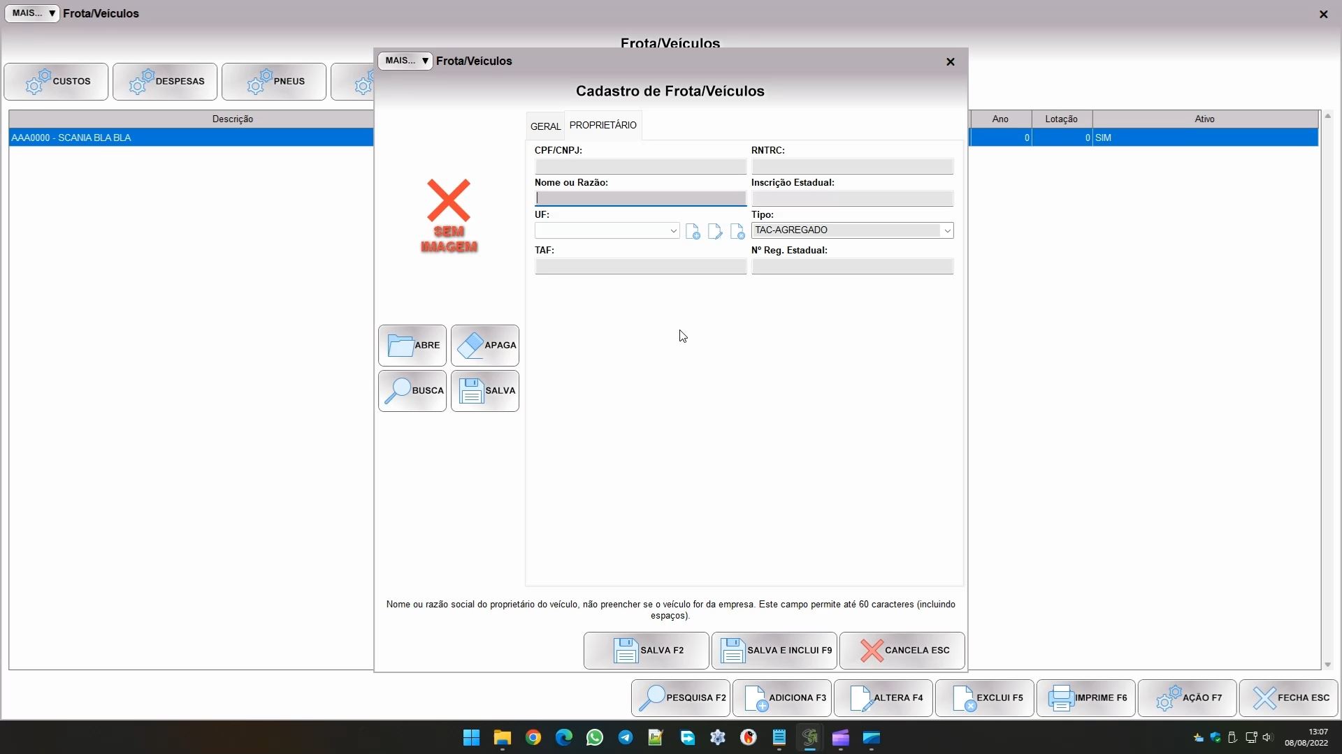 Ao incluir um veículo nos segmentos de frota e fretamento, você verá um cadastro parecido com este: