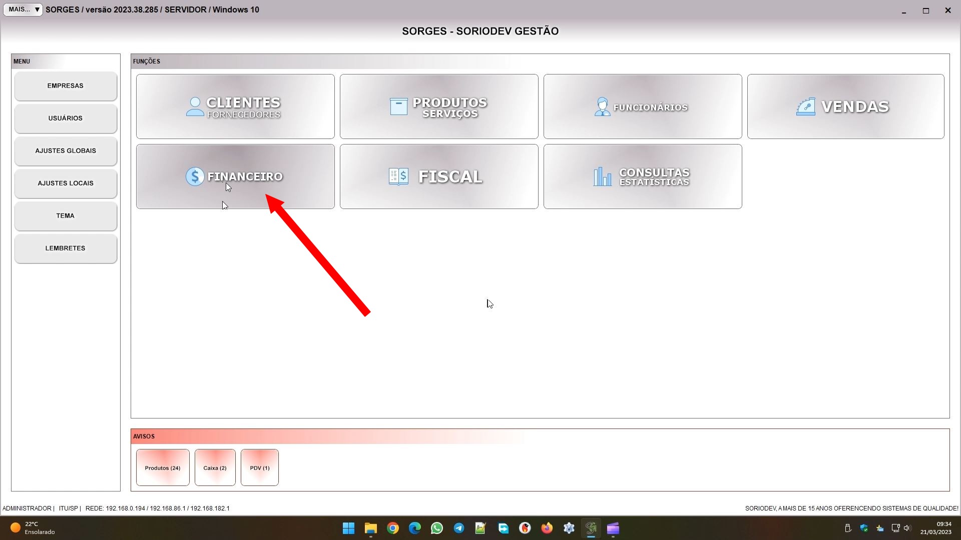 Se você emite documentos fiscais no sistema, tenha atenção a aba FISCAL: