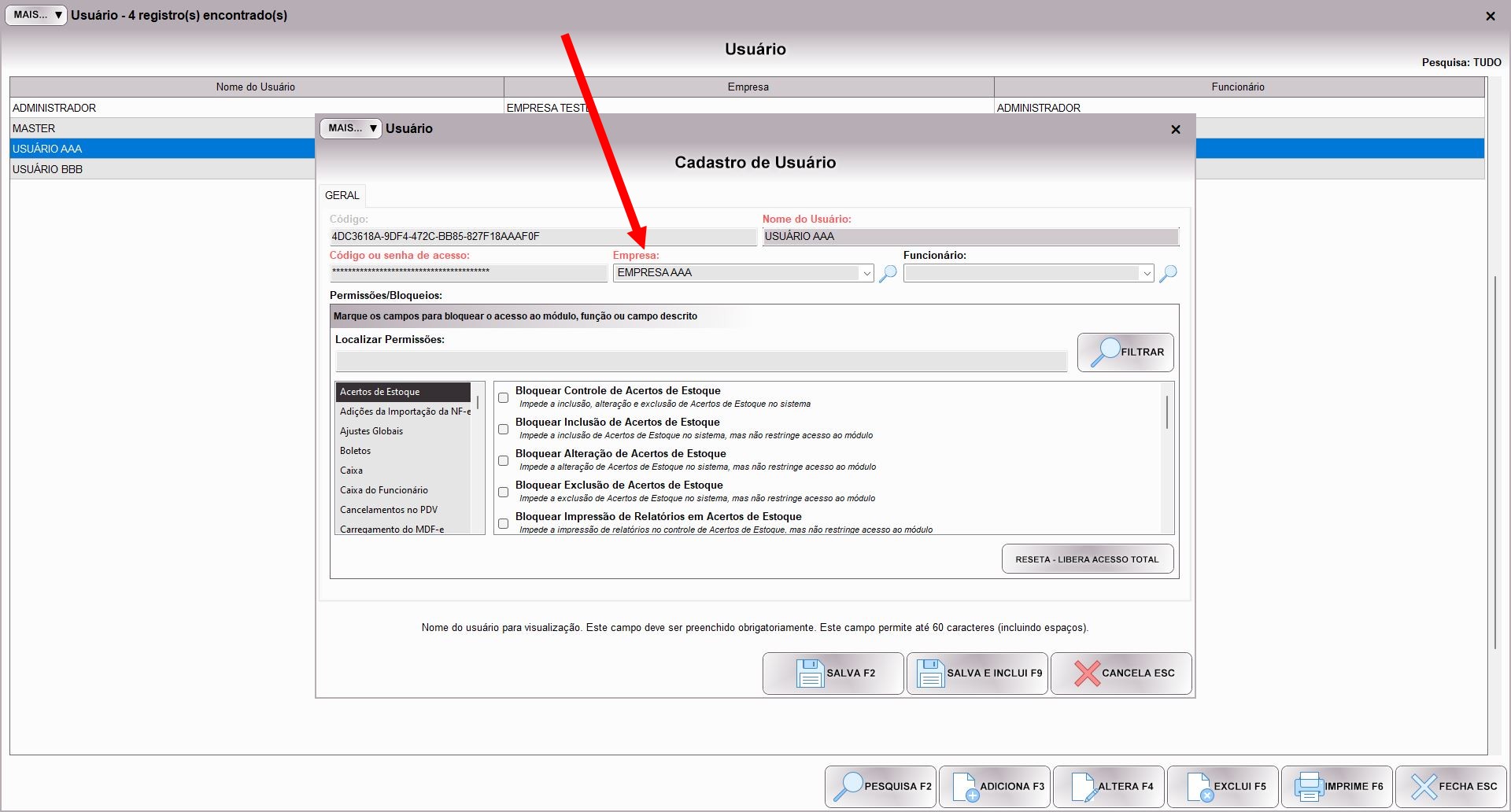 Note que o usuário tem um campo EMPRESA, é aí que você faz a “amarração” entre este usuário e a qual empresa ele pertence.