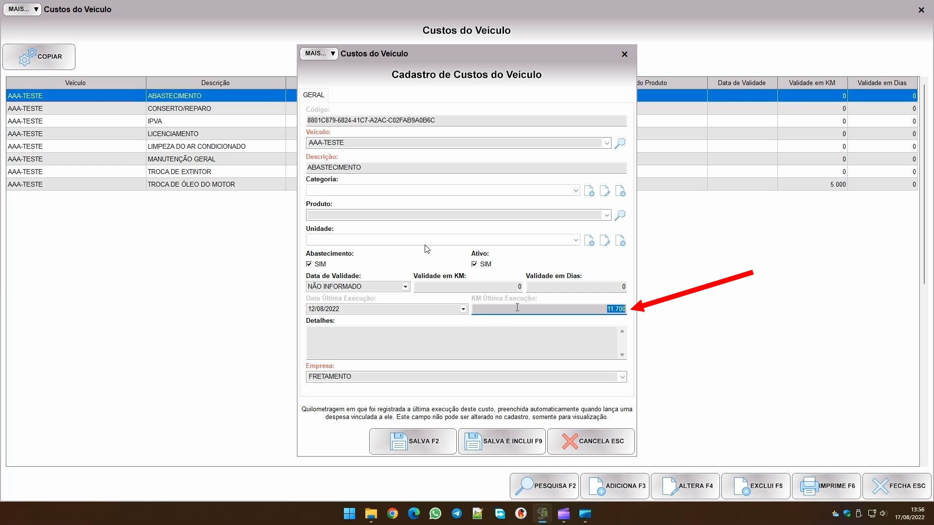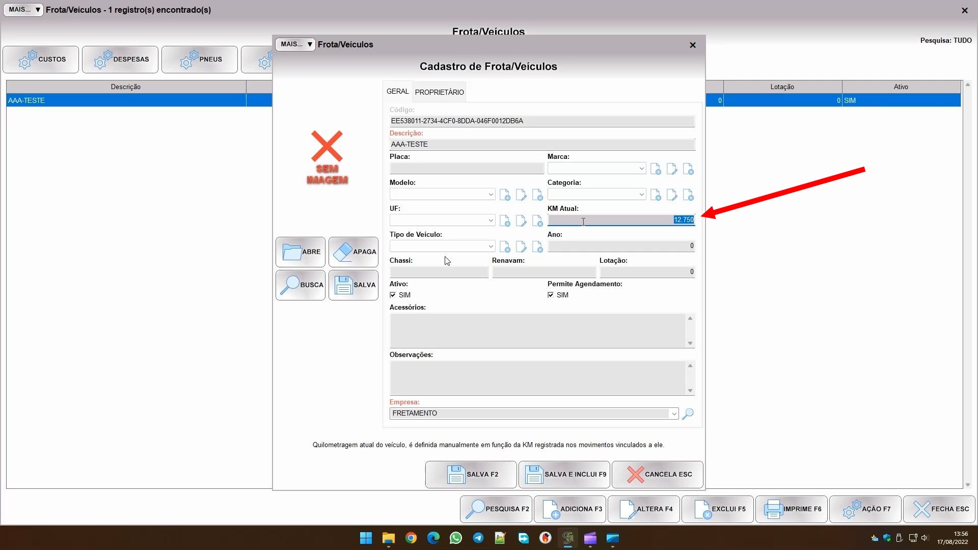 Mas e se você errar na digitação da km? O que vai ocorrer aí é o cadastro ficar errado, e toda vez que o sistema capturar ele vai trazer uma km errada. Vale notar aliás que na despesa você nem consegue corrigir a última km diretamente. Para isso é preciso localizar o movimento que está errado e corrigir ele diretamente.