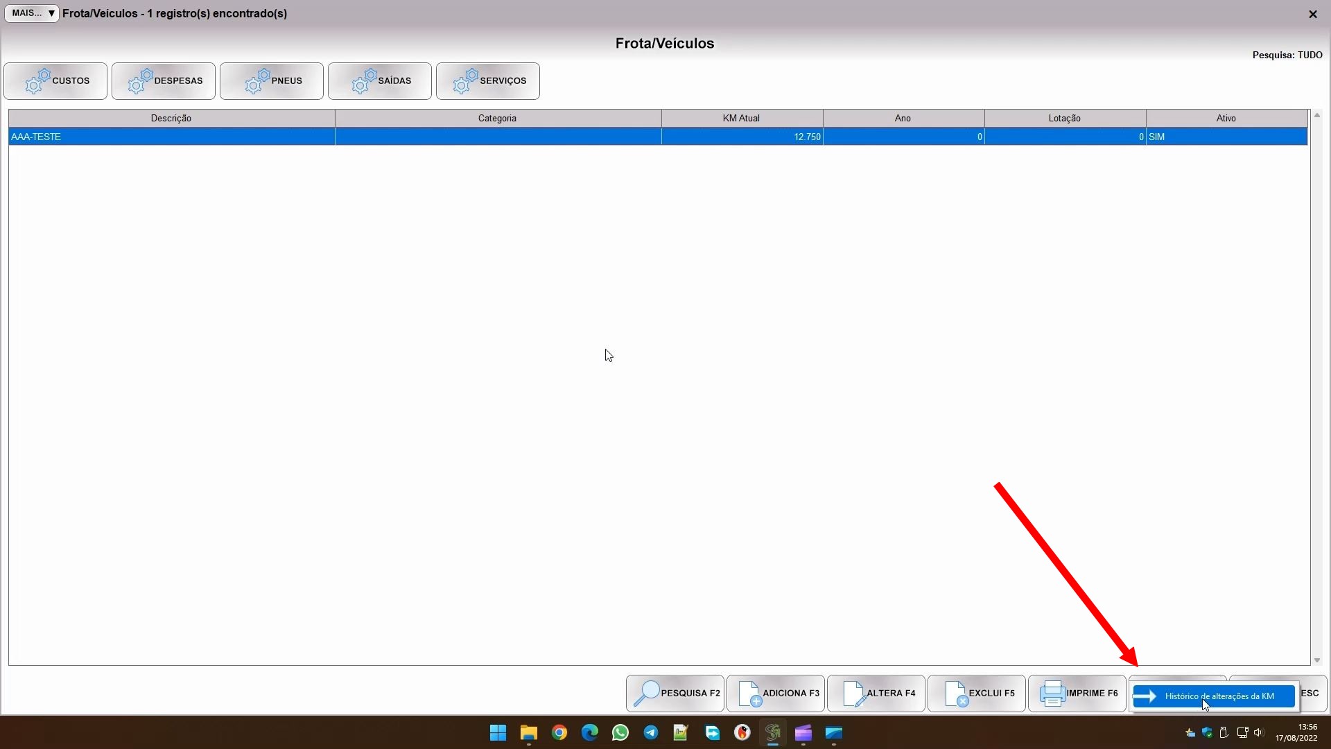 É neste ponto que entra uma consulta que auxilia no processo. No botão AÇÃO, entre em HISTÓRICO DE ALTERAÇÕES DE KM.