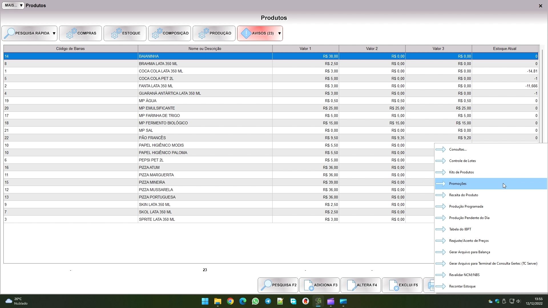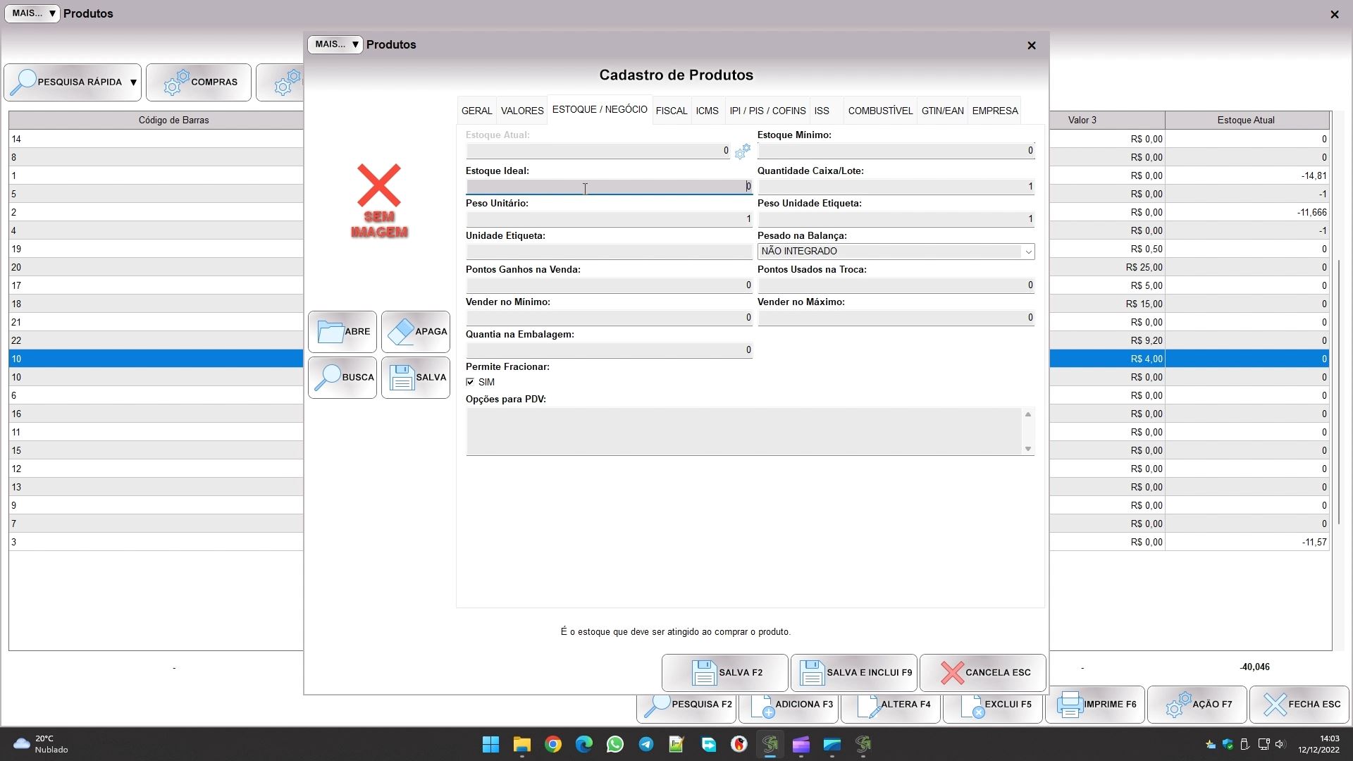 Os dois campos relativos a pontos são para um sistema promocional que explicaremos em mais detalhes noutro artigo, mas resumidamente, ao comprar o cliente ganha o valor indicado em PONTOS GANHOS NA VENDA, e ao acumular o valor indicado em PONTOS USADOS NA TROCA ele pode levar o produto de graça. Fique tranquilo pois se os campos estão zerados não entram no esquema promocional.