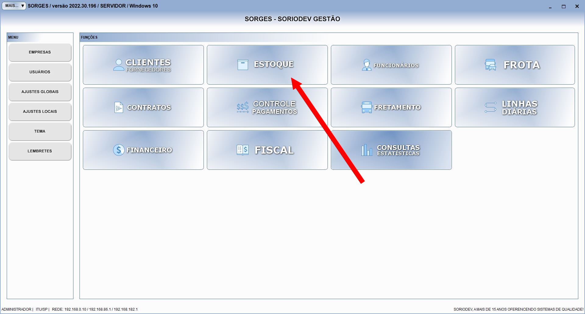 Em alguns sistemas o botão pode assumir o nome ESTOQUE: