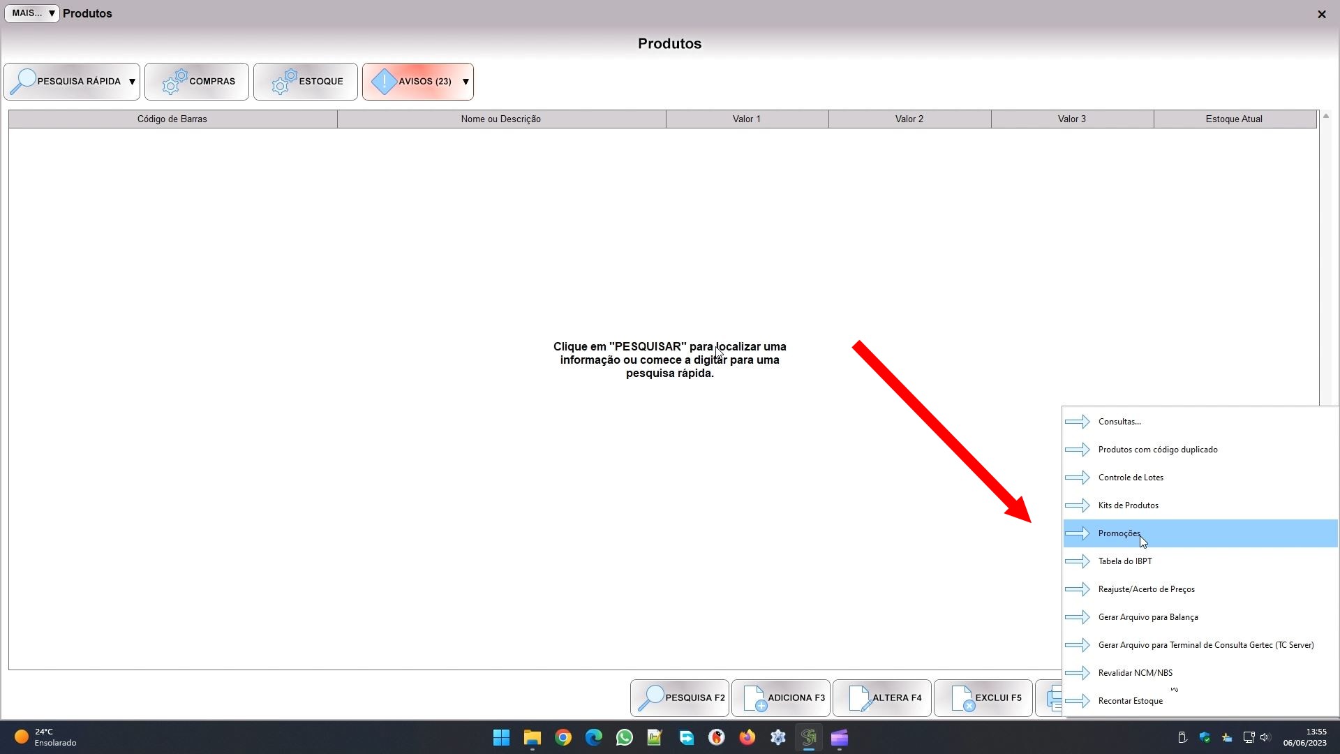 As promoções a que me refiro são aquelas que estão no botão AÇÃO do controle de produtos, na opção PROMOÇÕES: