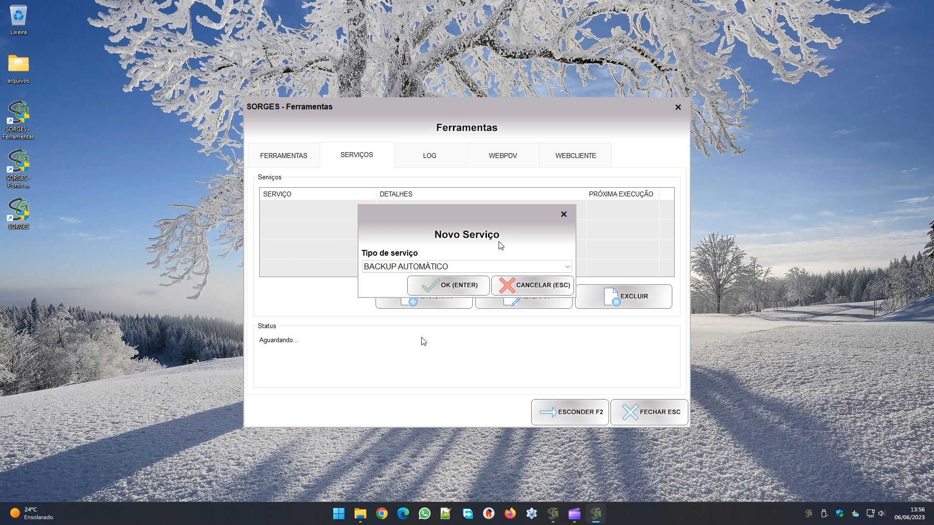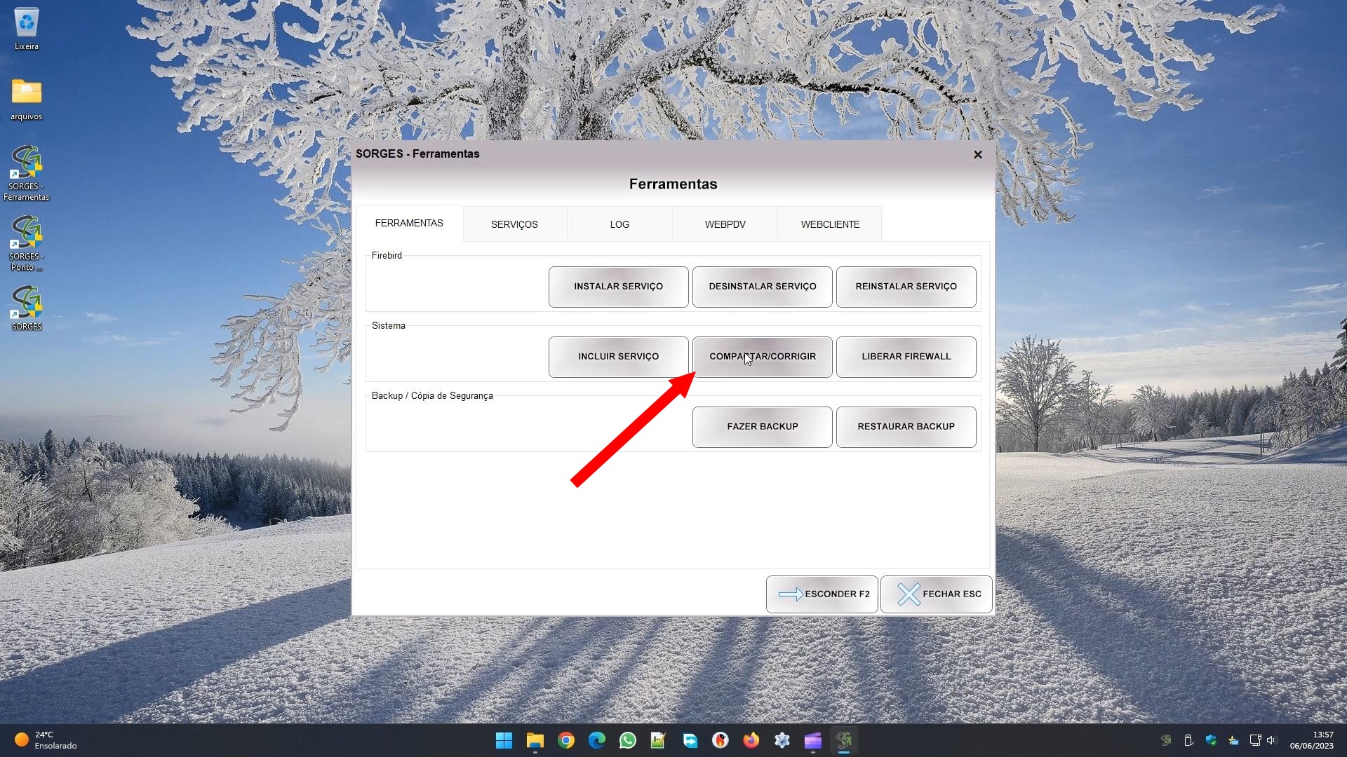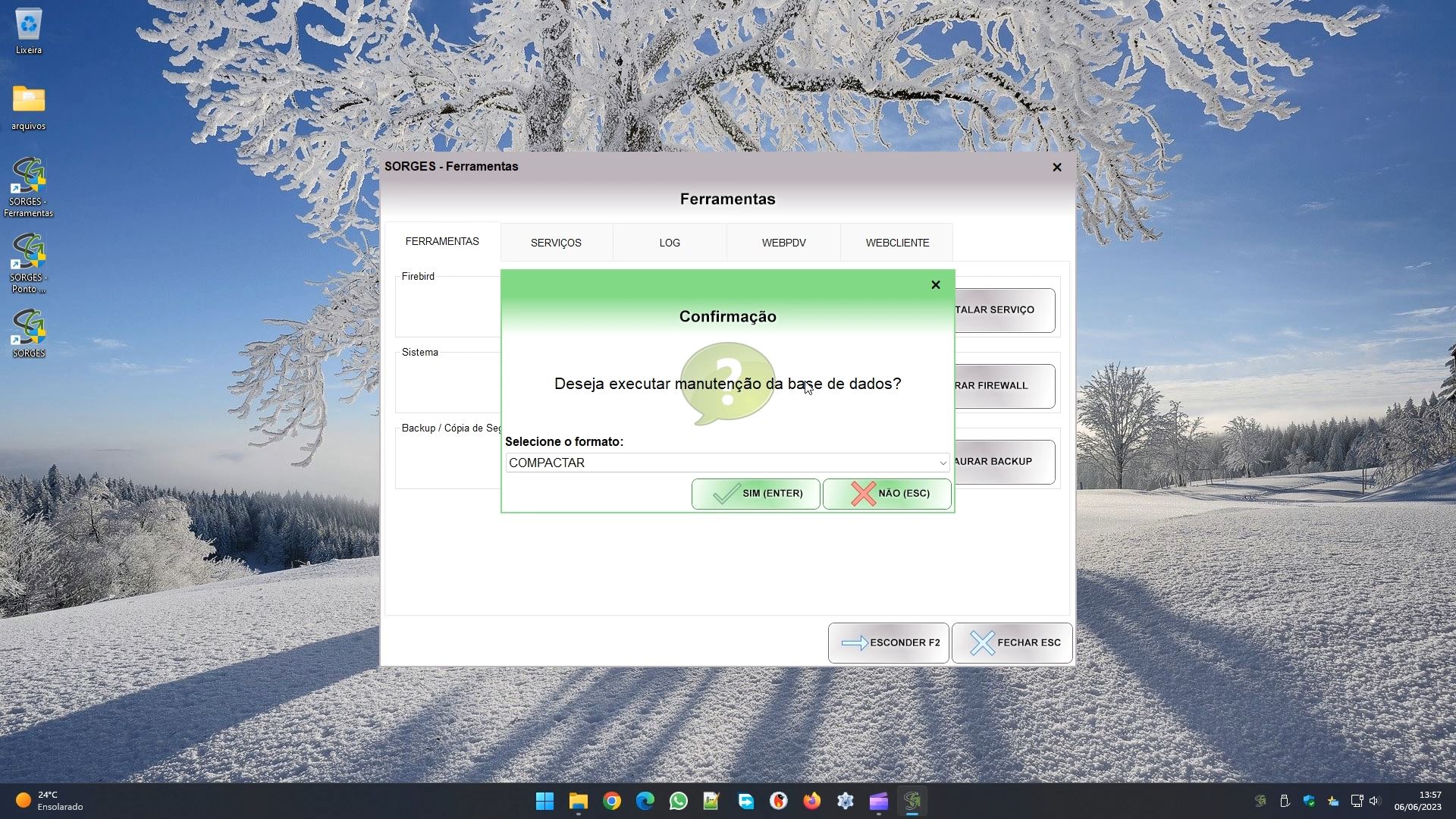 Além dessas configurações todas, temos ainda um módulo de ferramentas. Você pode acessá-lo pelo atalho SORGES – FERRAMENTAS em sua área de trabalho.
