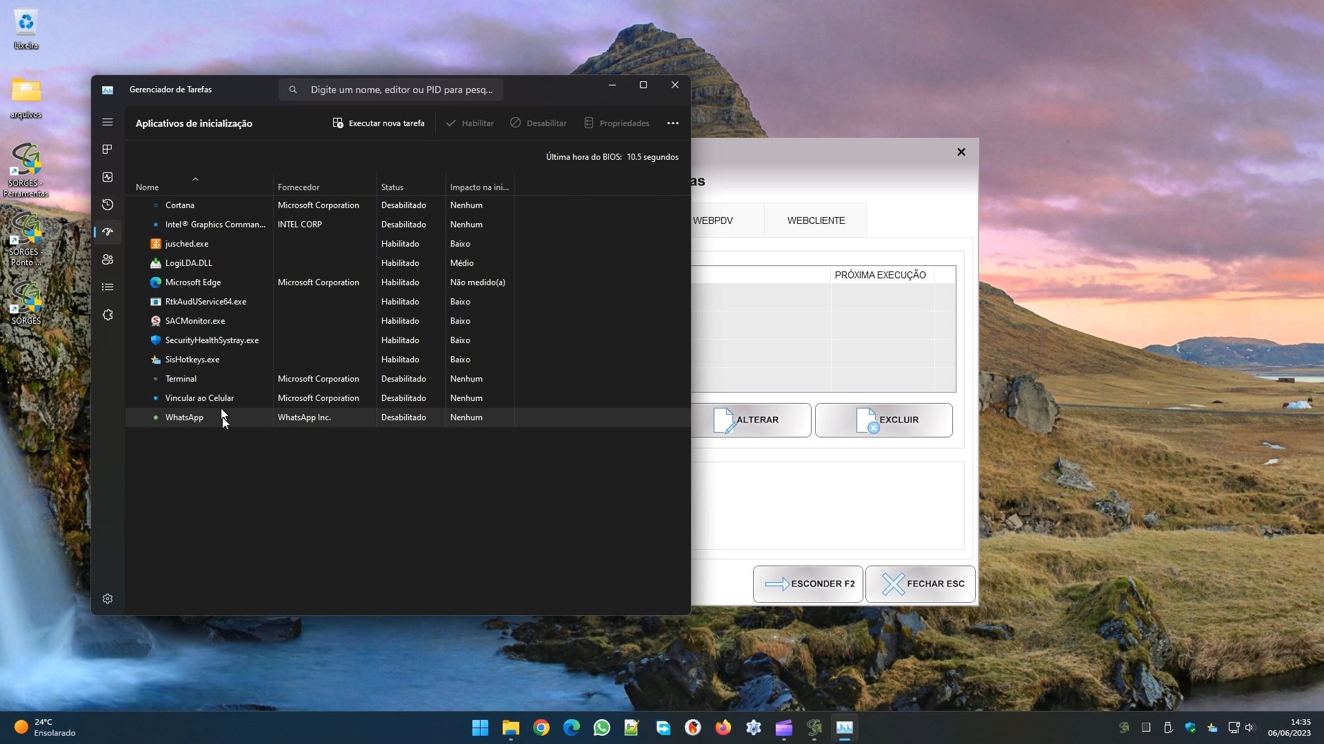 E nesta aba temos a lista de programas abertos: