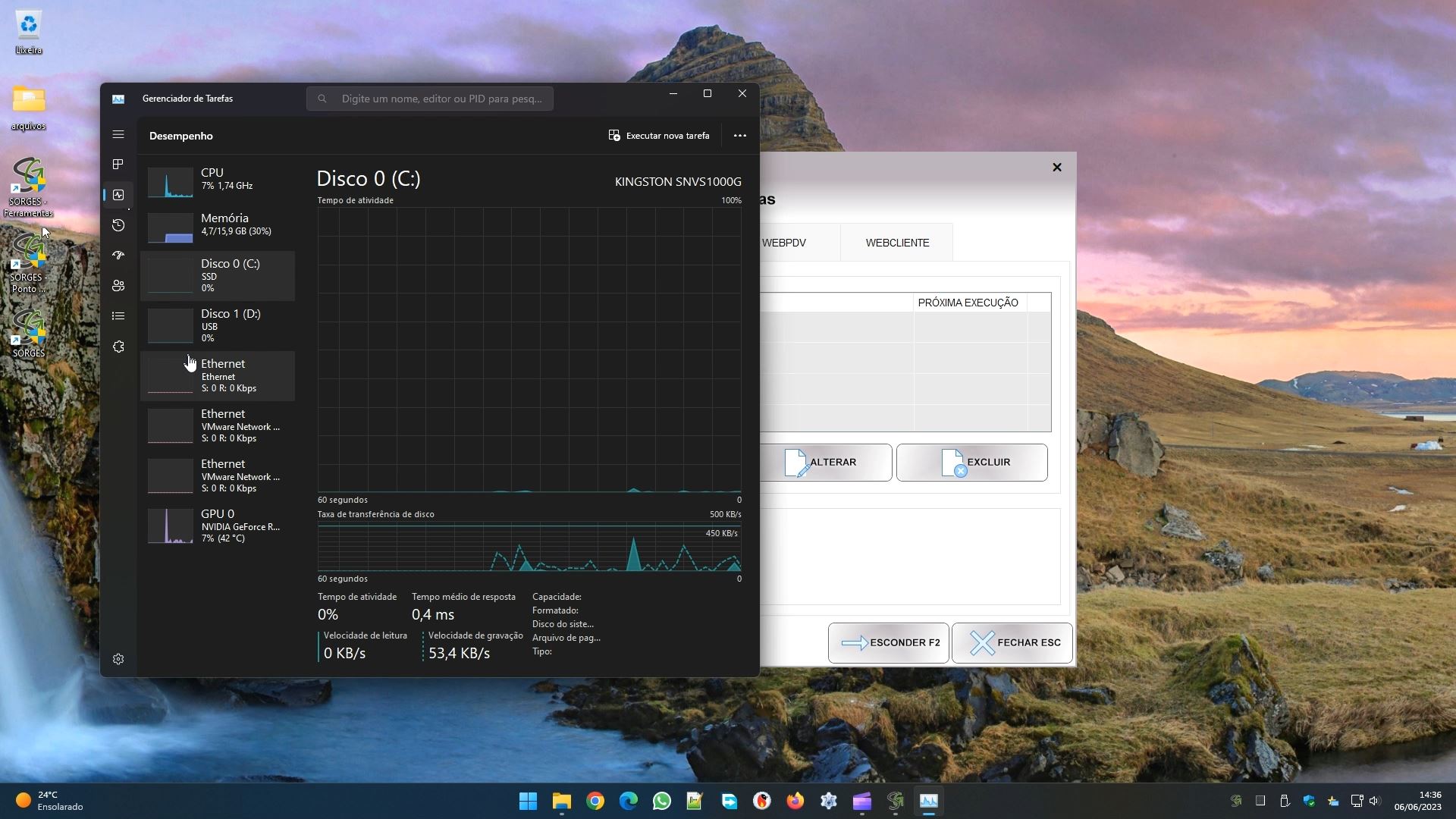 Fazendo isso verá o gerenciador de tarefas do Windows. Ele permite visualizar muitas coisas do seu computador em tempo real: