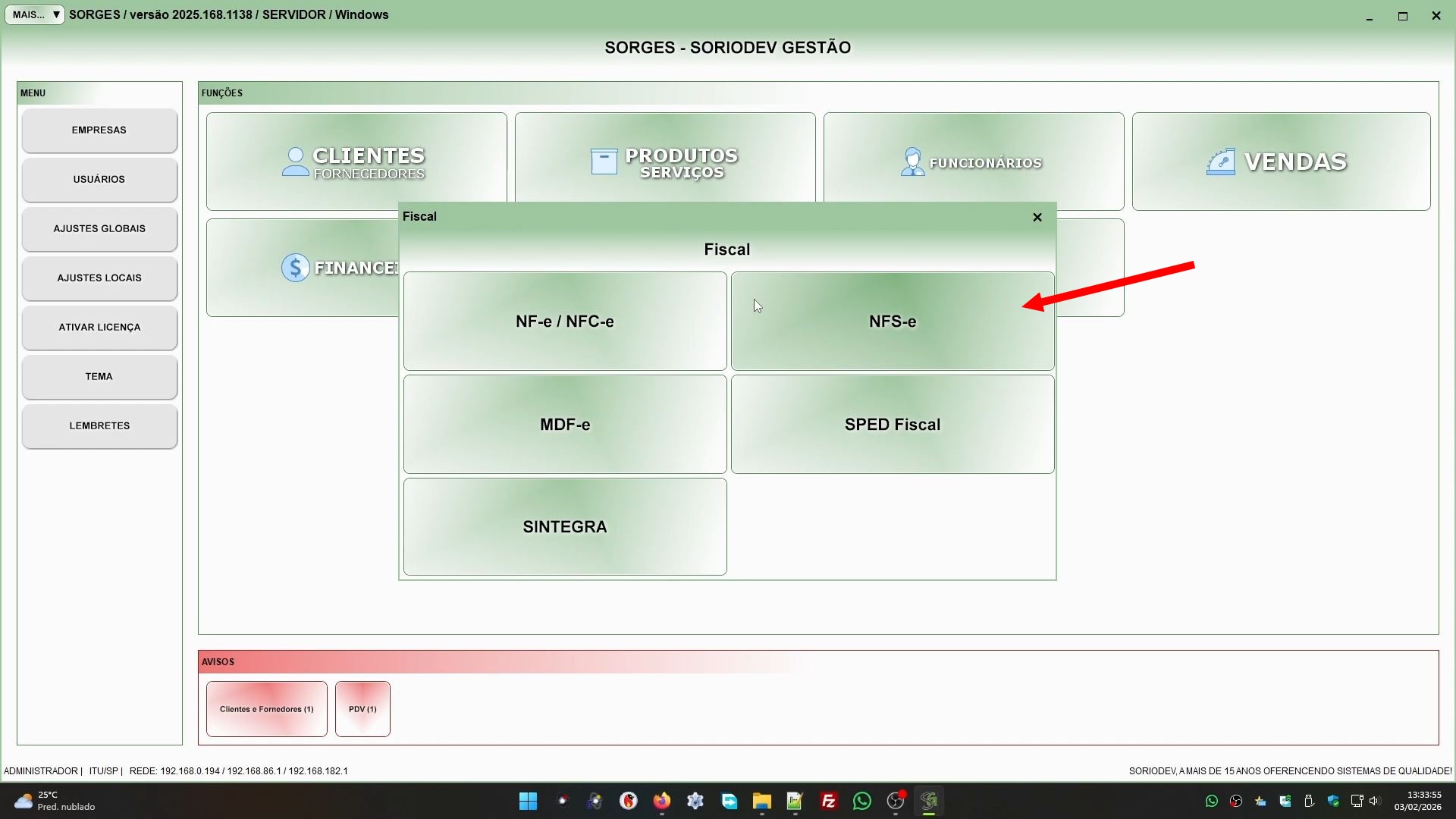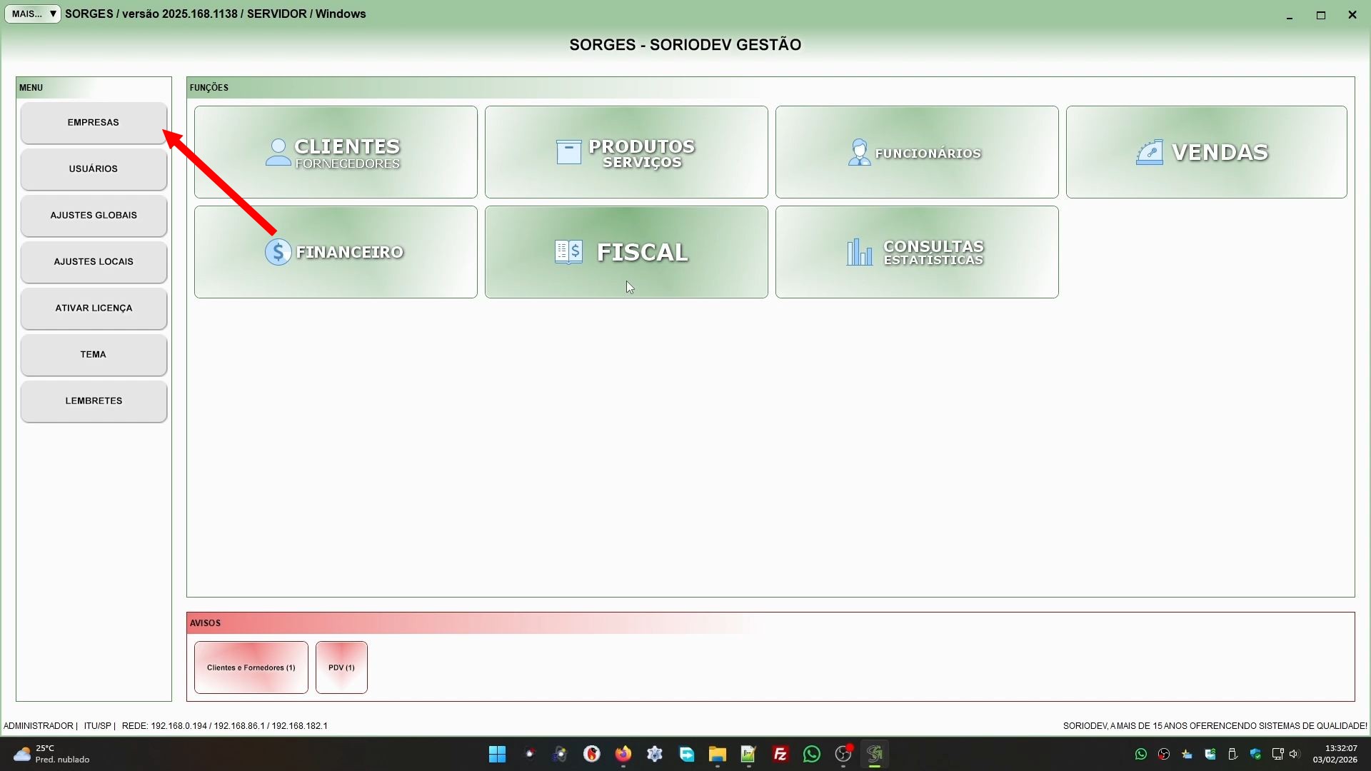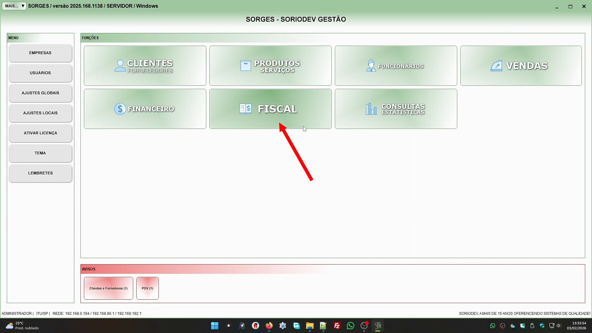 Com essa teapa prévia feita, finalmente vamos para a nota fiscal. Vá em FISCAL: