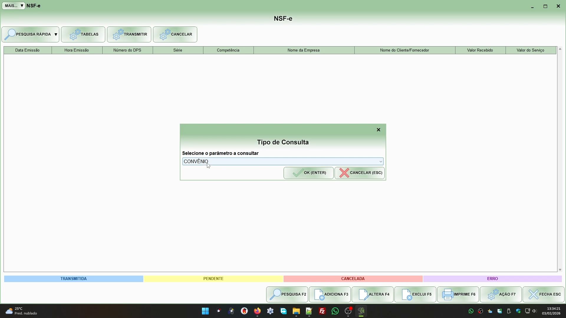 Deixe selecionada a opção CONVÊNIO e confirme: