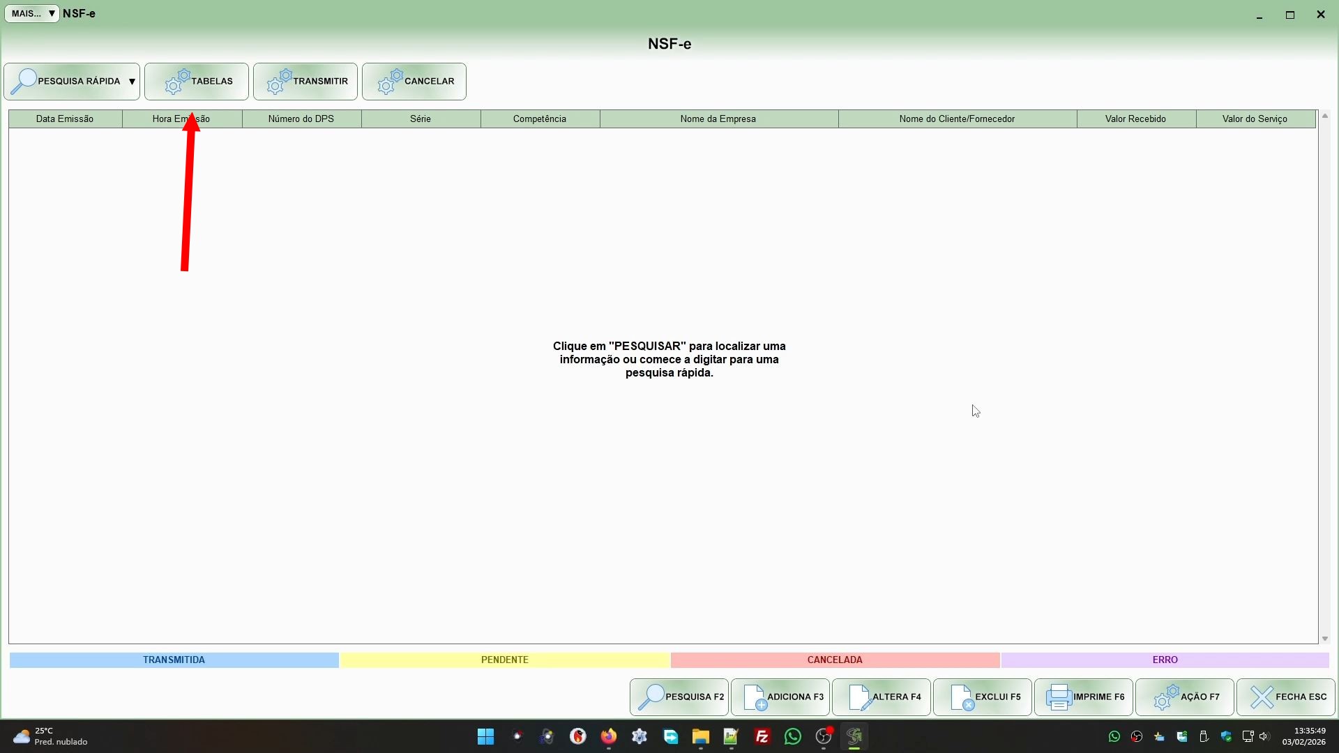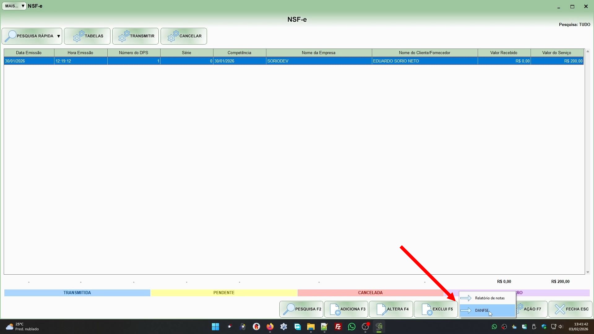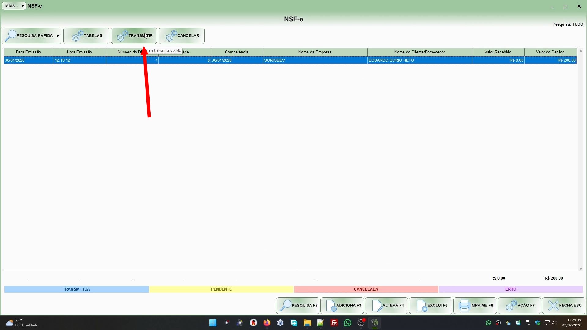 Uma vez que preencheu e salvou a nota, clique em TRANSMITIR para enviar ela: