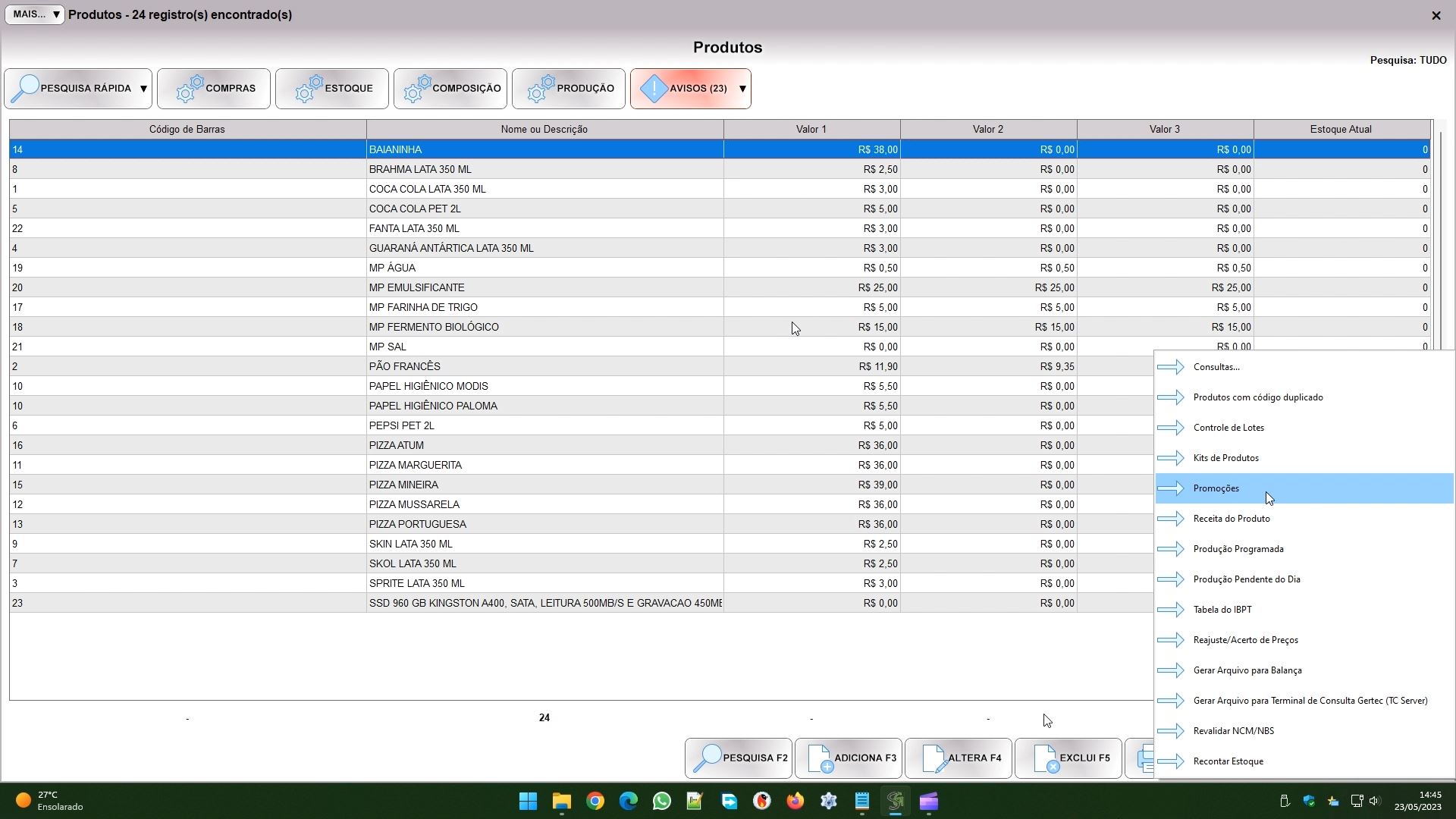 - O sistema não faz distinção na aplicação das promoções, então evite criar promoções que aplicarão descontos sobre um mesmo produto. Exemplo, ter 3 promoções ativas nas quais quando o cliente compra certa quantia de produto ganha desconto na coca cola pet 2L;