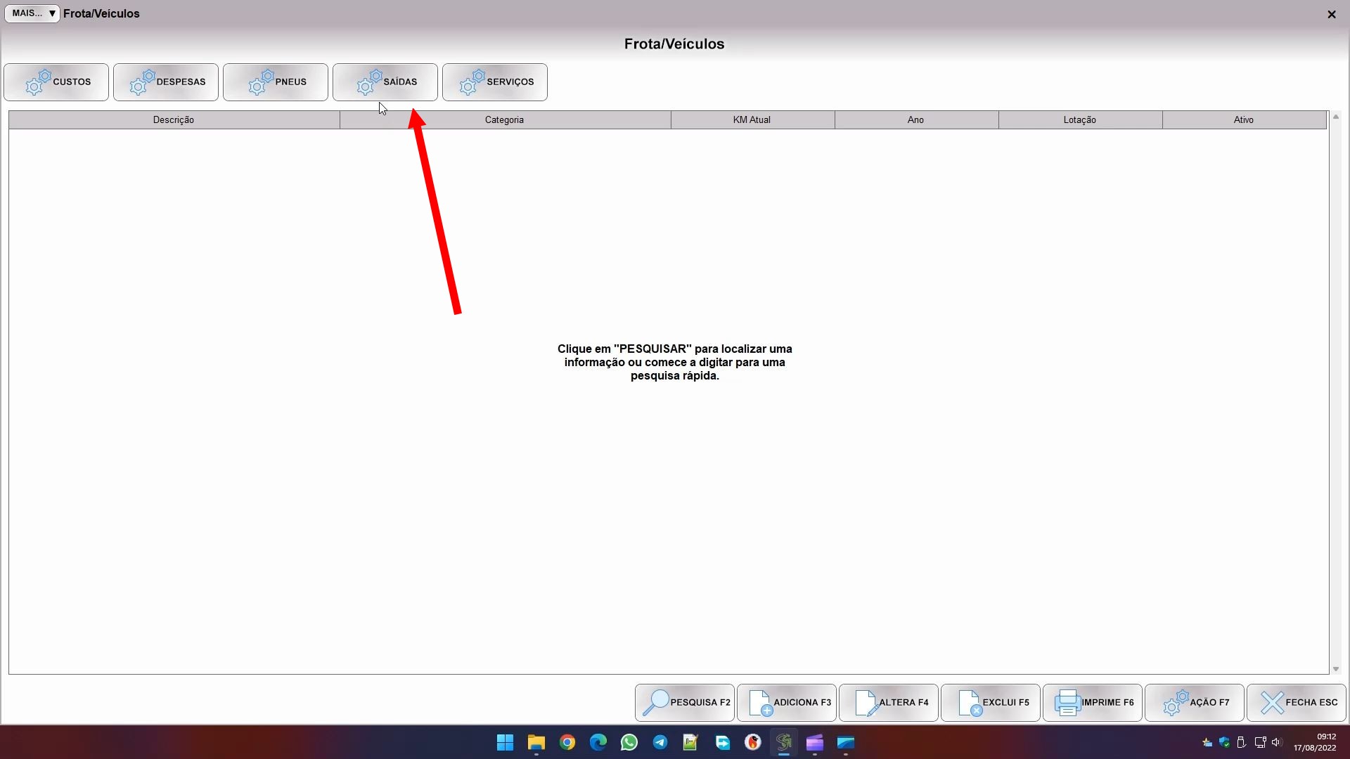 Como dito acima, o módulo de saídas/deslocamentos serve para registrar algum movimento não comportado por outros módulos do sistema. Por exemplo, quando o veículo vai para outra garagem, quando ele vai para o conserto, etc…