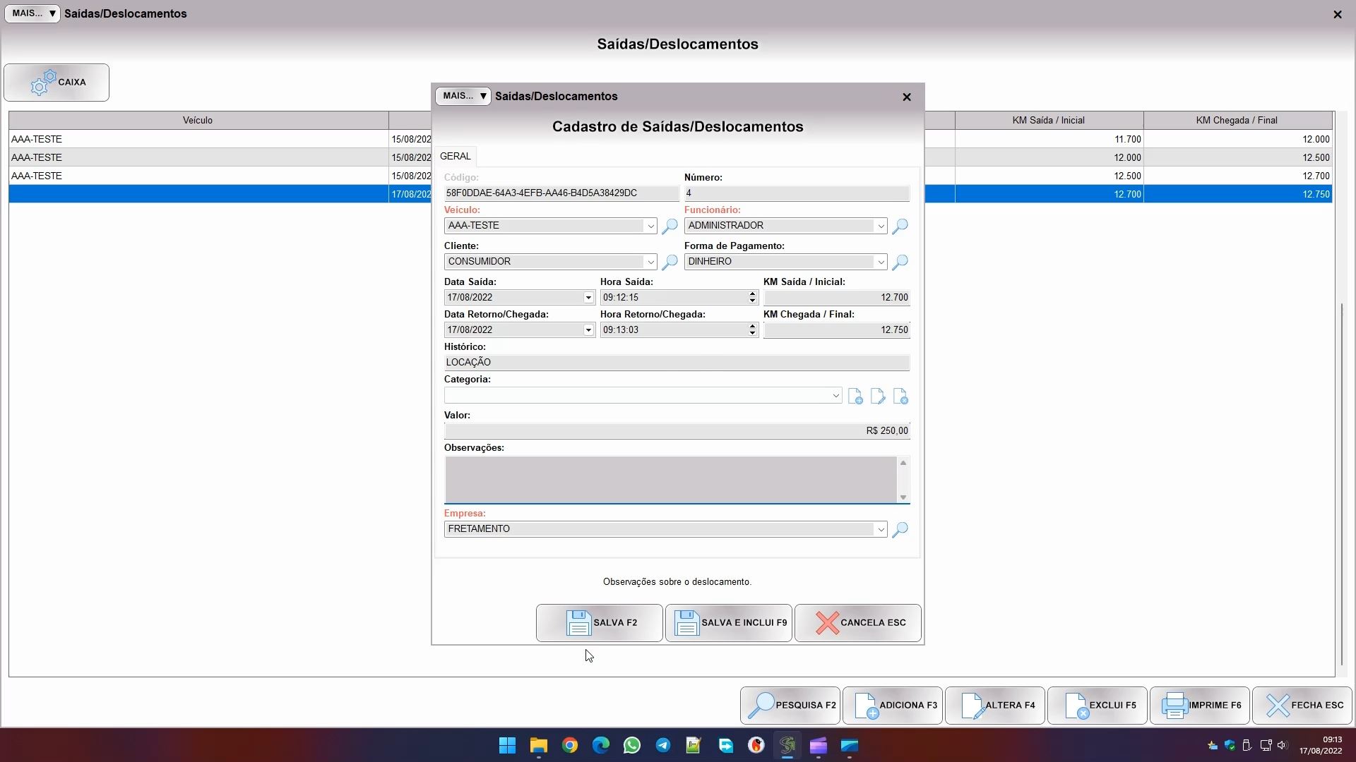 - CLIENTE, FORMA DE PAGAMENTO e VALOR: estes 3 campos você só usa se quer contabilizar algum faturamento com este registro. Se você usa o segmento de fretamento já existe o módulo de fretamentos que contabiliza valores, então vai usar este módulo para contabilizar valores apenas se quer algo mais simples, ou se utiliza o segmento controle de frota e precisa registrar o valor. Neste caso, use estes 3 campos para que ocorra o lançamento financeiro;