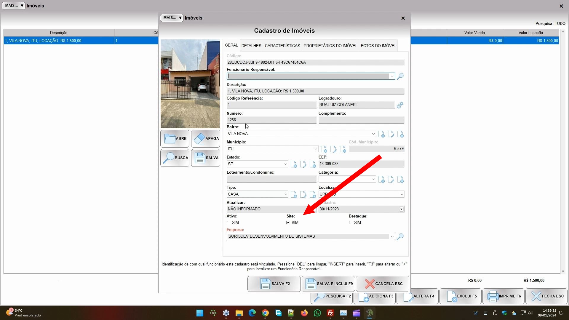 Primeiramente, no cadastro do imóvel a opção SITE deve estar marcada: