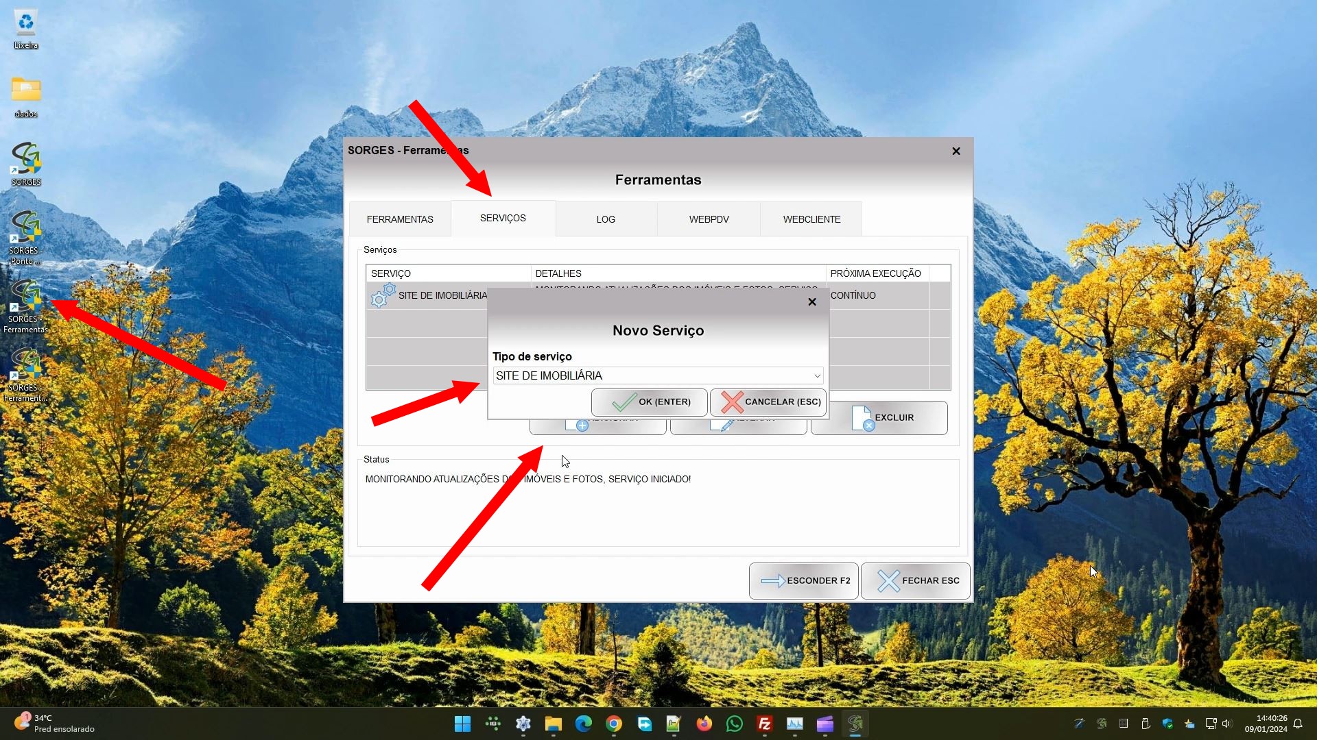 Vá em SERVIÇOS, clique em ADICIONAR, e selecione SITE DE IMOBILIÁRIA.