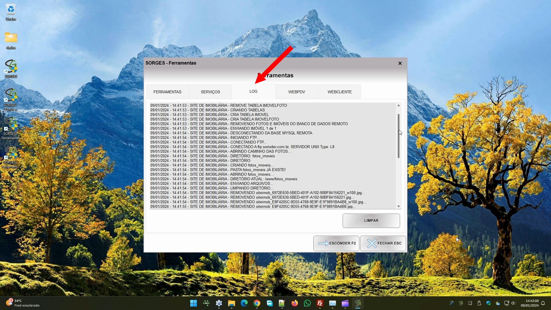 Uma vez configurado o serviço, conforme ele executa poderá ver passos que ele fez na aba LOG.