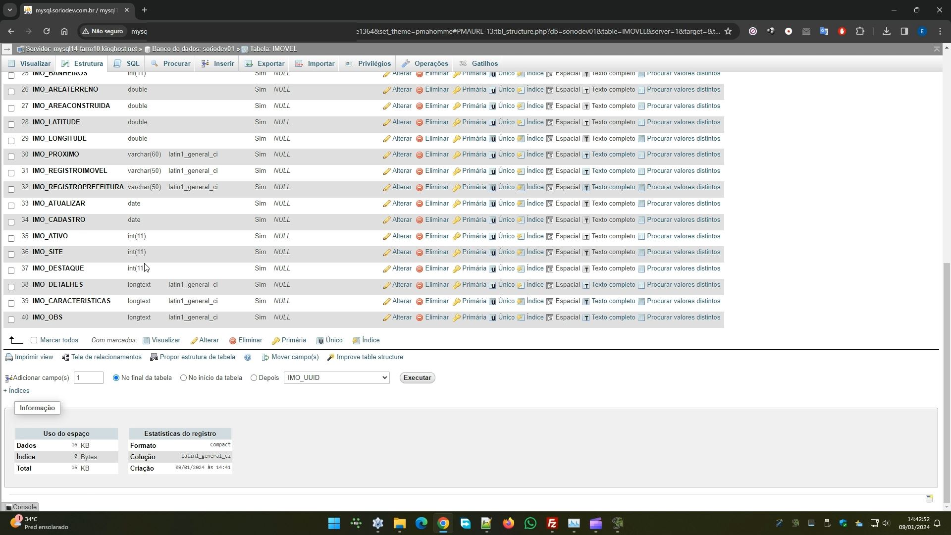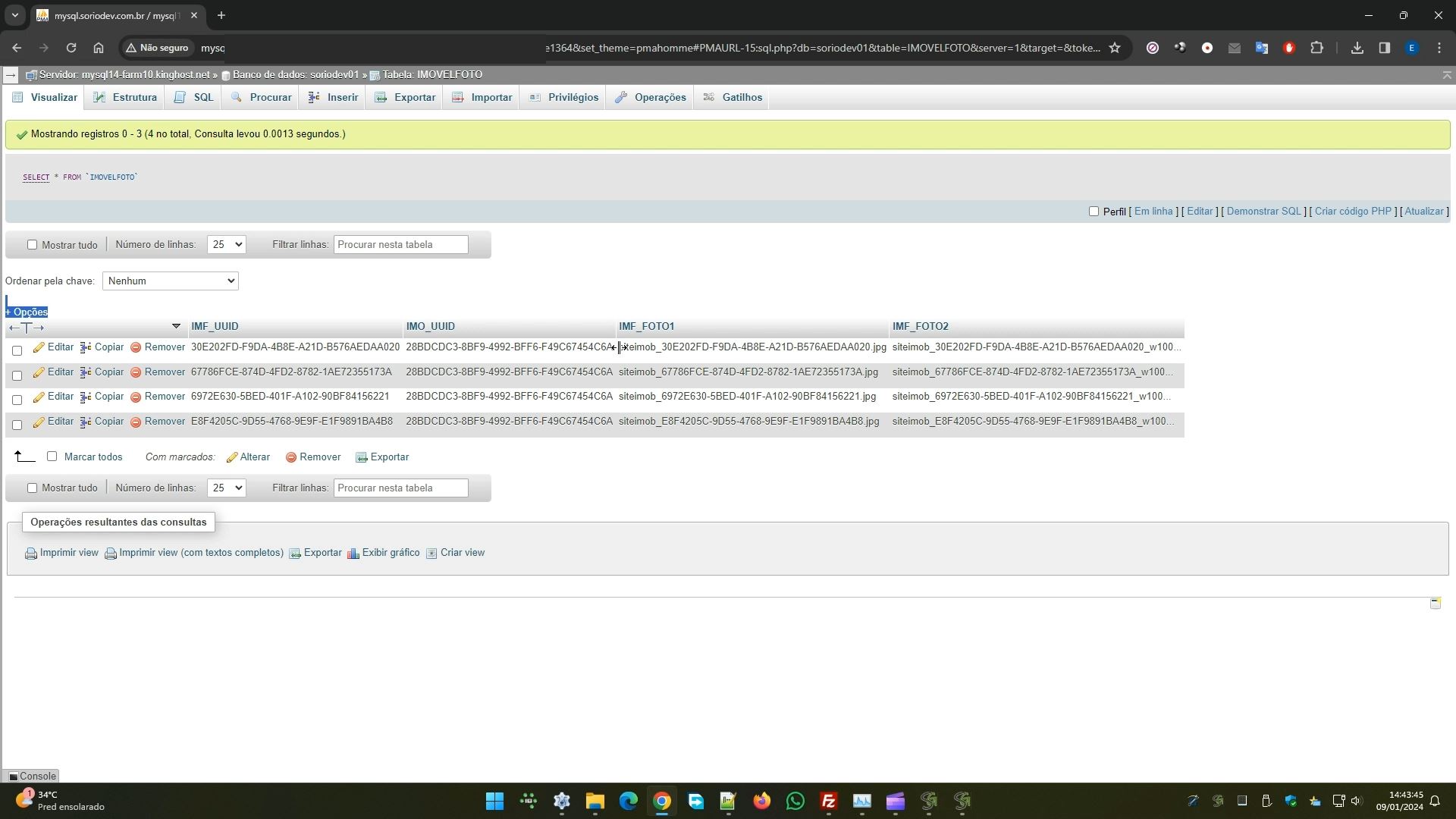 O sistema cria duas tabelas na base: IMOVEL e IMOVELFOTO. A primeira tem os dados dos imóveis, e a estrutura é parecida com a da tabela dentro do sistema SORGES: