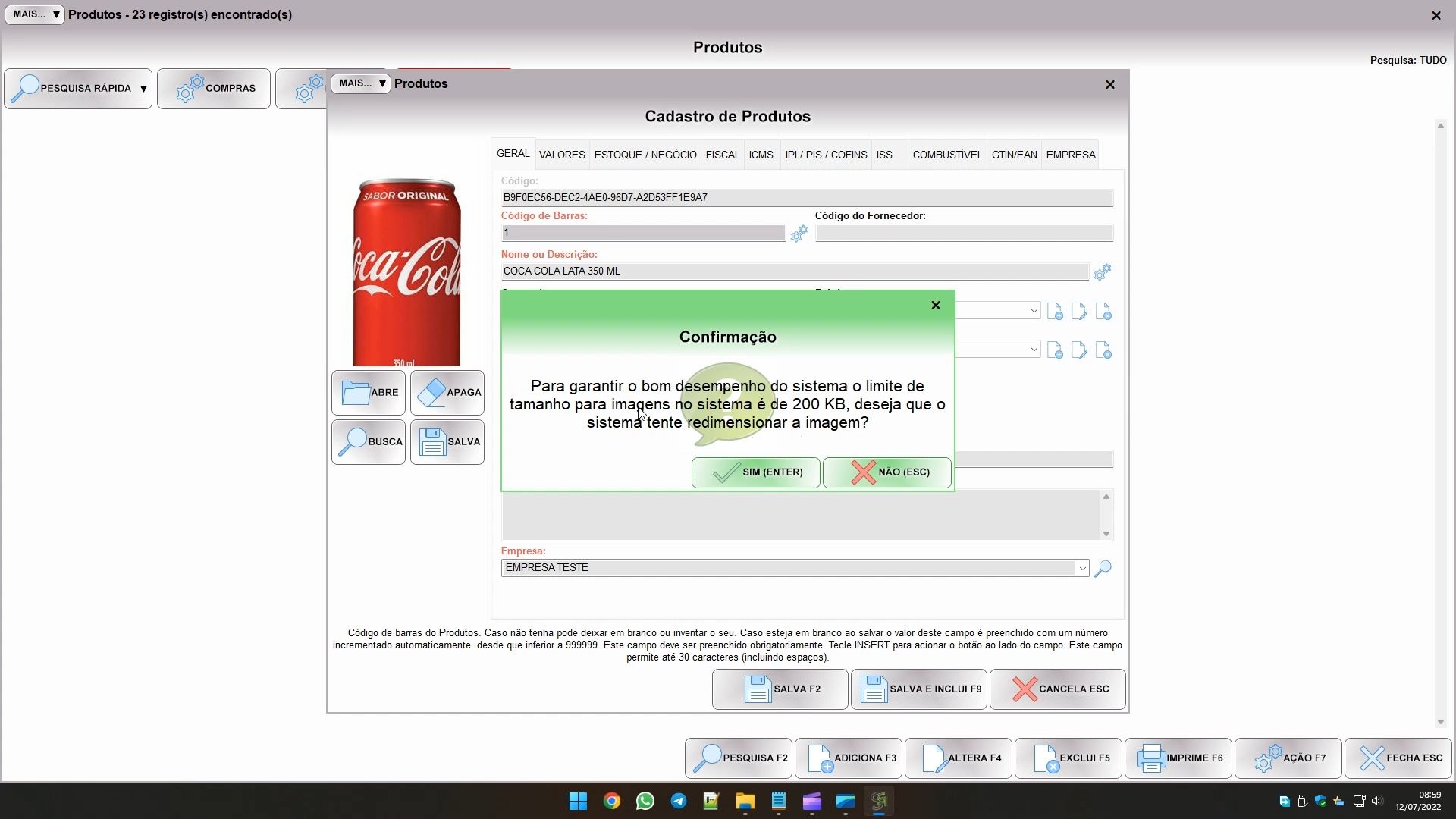 Basta confirmar (clicar em SIM) para carregar ela. Se a imagem passa de um certo tamanho o sistema ajusta e reduz ela, para não deixar o sistema muito lento com uma base cheia de imagens grandes.